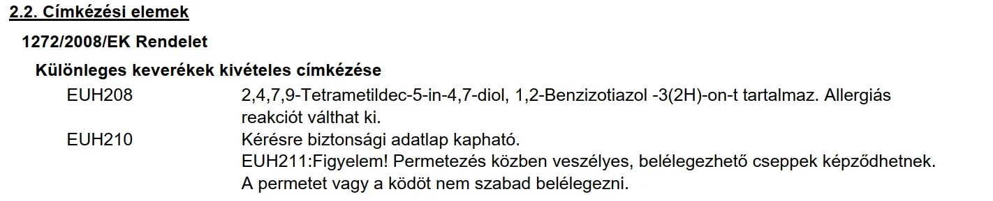| Izotiazolinonra allergiásoknak is alkalmas: | Nem alkalmas |