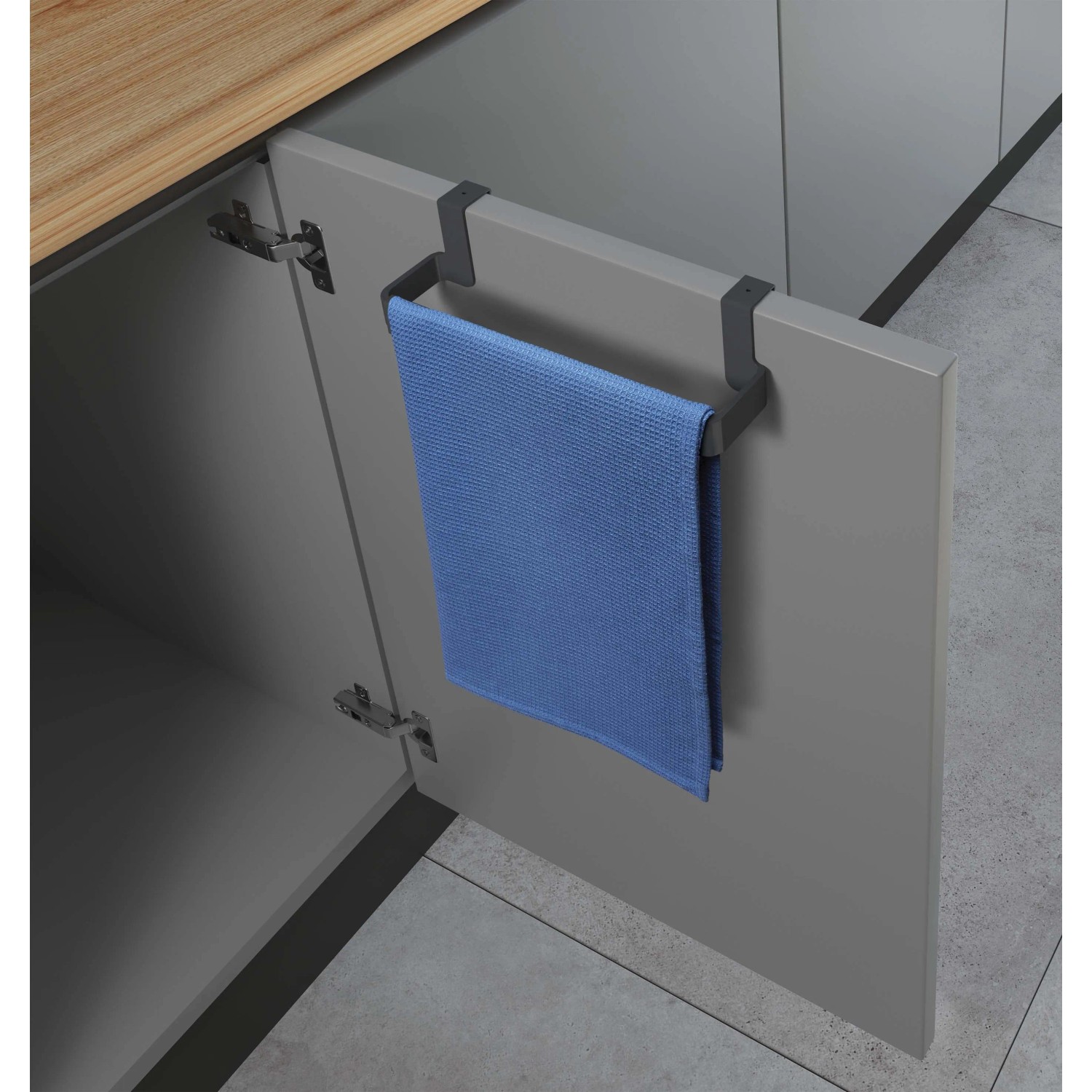 Ajtóra helyezhető és a kívánt szélességre állítható,24 cm és 40 cm között, müanyag, szürke.