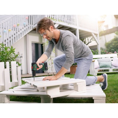 Az UniversalDrill 18 V-os akkus fúró-csavarozót a Power4All sorozatú 18 V-os lítium-ion akkumulátor (külön megvásárolható) működteti. Ezt az akkumulátort az összes többi Bosch Home & Garden készülékhez használhatja. Megspórolhatja több ugyanolyan teljesítményű akkumulátor megvásárlását, ami nagyobb rendet eredményez a pincében vagy a szerszámtárolóban. A Power4All sorozat akkumulátorai egy praktikus 3 LED-es töltöttségiszint-jelzővel rendelkeznek, amelyek lehetővé teszik az előrelátó munkavégzést. A modern lítiumtechnológia megakadályozza a memóriahatást és elkerüli az önkisülést, így a fúró mindig használatra kész, és még részleges töltések is teljesítményveszteség nélkül végezhetők el.