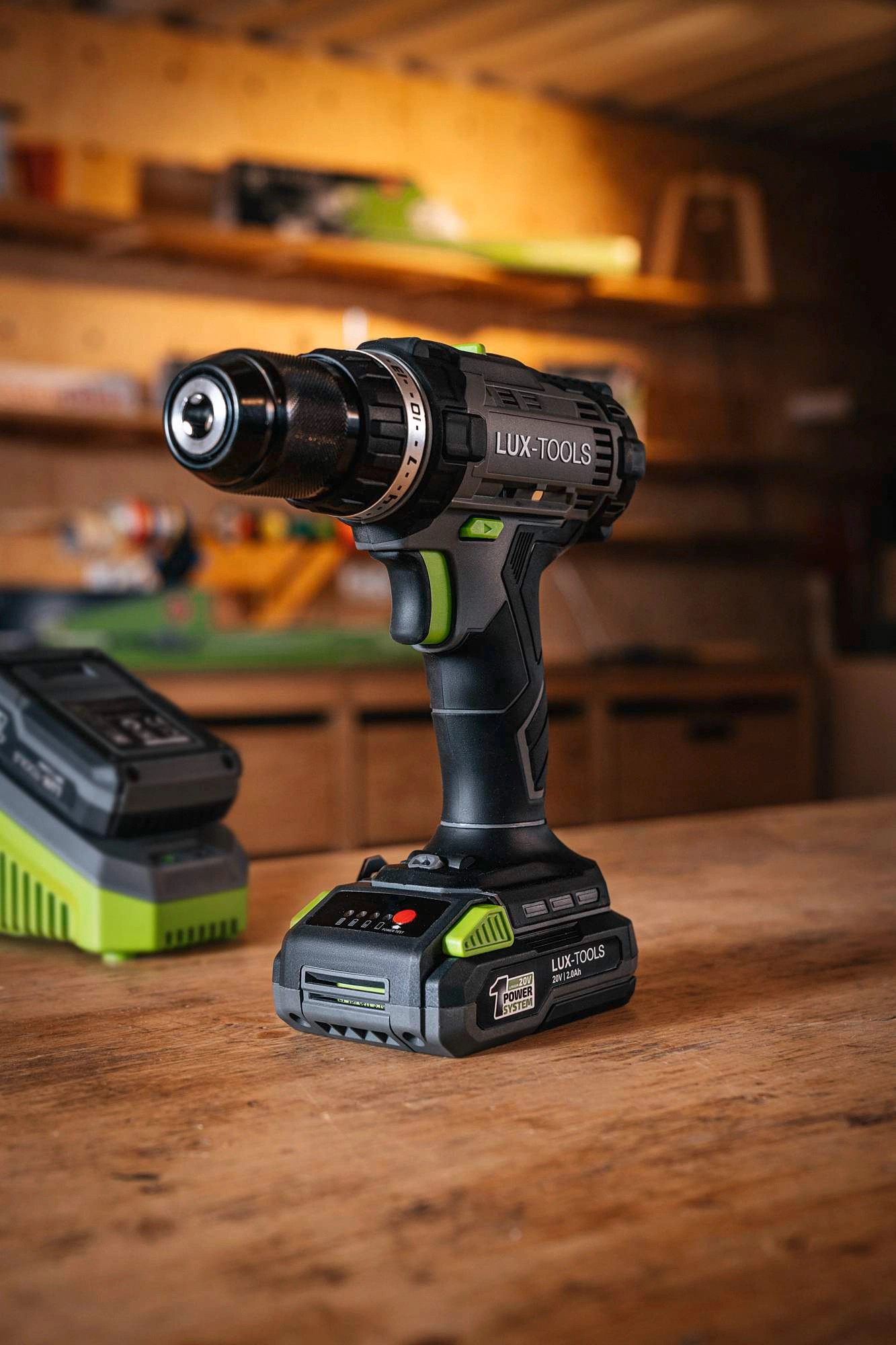 A LUX-TOOLS A-BS-20 akkus fúró-csavarbehajtó sokoldalú partner a csavarok erőteljes meghúzásában és könnyű kioldásában, valamint a fúrásban is. Megbízható, sokoldalú eszközként szolgál a bútorépítés, famegmunkálás és egyéb hobbi- és barkácsolási munkák során. A szerszám a LUX 1 PowerSystem részét képezi, és a sorozat kiváló minőségű 20 V-os (18 V névleges) lítium-ionos akkumulátoraival működtethető. A kívánt akkumulátort külön-külön is beszerezheti 2 Ah-s vagy 4 Ah-s változatban.