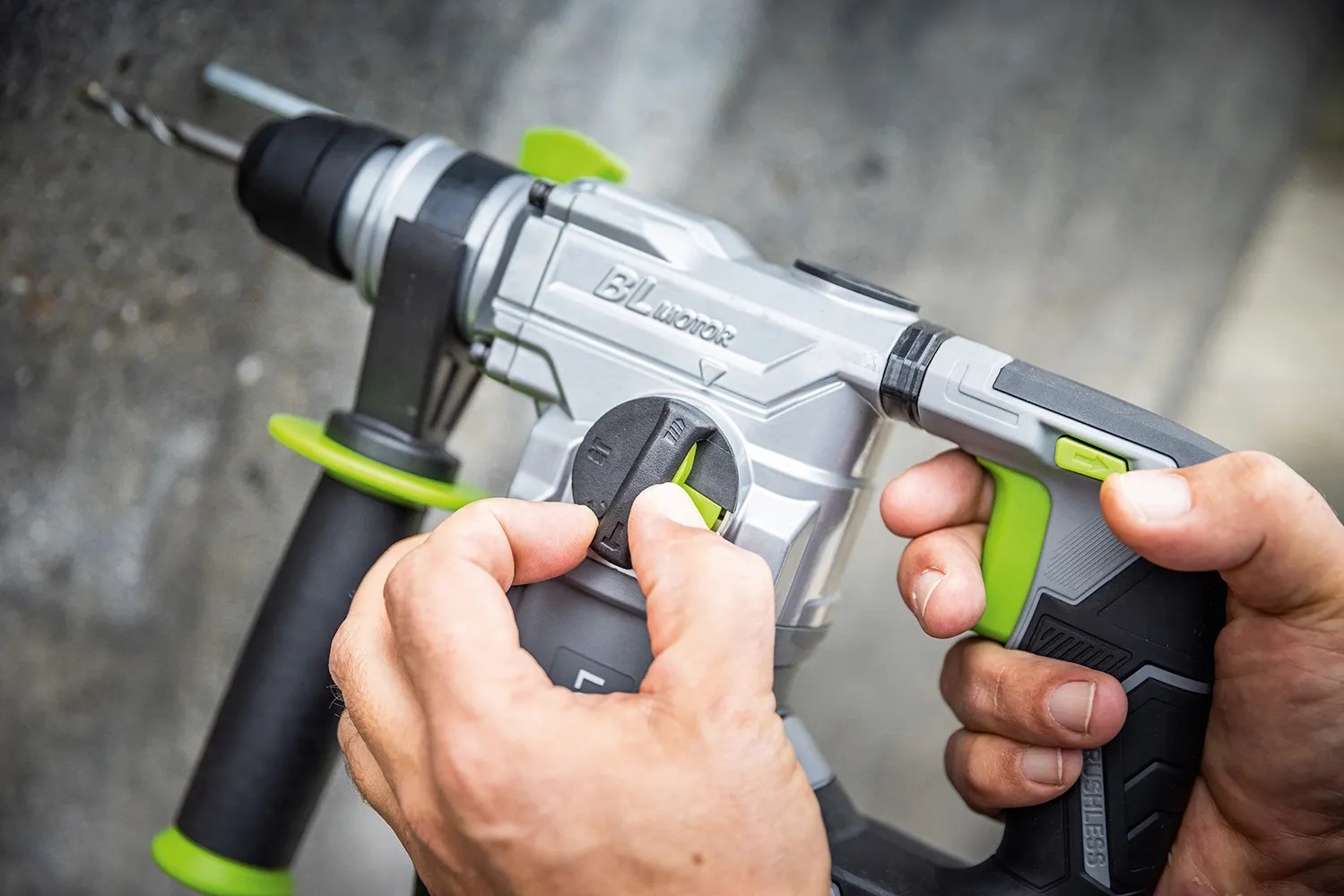 A fokozott munkavédelem érdekében a vésőkalapács beépített gyorsleállító funkcióval van ellátva, amely a működtető gomb elengedésekor azonnal leáll, így megakadályozza a fúrótokmány túlfutását. Így minimálisra csökken a fúrószár anyagi károsodásának és elakadásának kockázata a furatban. A szerszámot kiegészítő fogantyúval szállítjuk, amely lehetővé teszi, hogy a szerszámot még a nagy erőt igénylő alkalmazások során is biztonságosan vezesse, és mindig biztos fogást biztosítson rajta. A sötét és nehezebben elérhető sarkokban való munkavégzés megkönnyítése érdekében a gép beépített LED-világítással rendelkezik. A munkaterület megvilágítása így mindig optimális lesz.