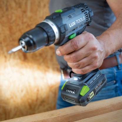 A LUX-TOOLS A-BS-20 akkus fúró-csavarozó nagy teljesítményű, kétfokozatú hajtással rendelkezik, így igény szerint átkapcsolhat 0-400 és 0-1400 percenkénti fordulatszámra is. A jobbra/balra forgási funkciónak köszönhetően a csavarok a forgásirányváltó kapcsolóval kézi erőkifejtés nélkül is könnyen kicsavarhatók. Az akkus fúró-csavarozó maximális forgatónyomatéka 35 Nm, 25+1 forgatónyomaték fokozattal. A gép egy robusztus fém gyorsbefogó tokmánnyal van felszerelve, amely lehetővé teszi a csavarozószerszámok gyors cseréjét. A tokmány befogási átmérője 2 mm - 13 mm között változtatható. A beépített LED-világításnak köszönhetően az akkus fúró a sötét sarkokban is jó megvilágítást biztosít. Az orsóreteszelés lehetővé teszi, hogy a befogótokmányt egy kézzel ki tudja nyitni. Az akkus csavarozó oldalán egy mágneses bittartó található, amelyben a legfontosabb biteket tárolhatja.