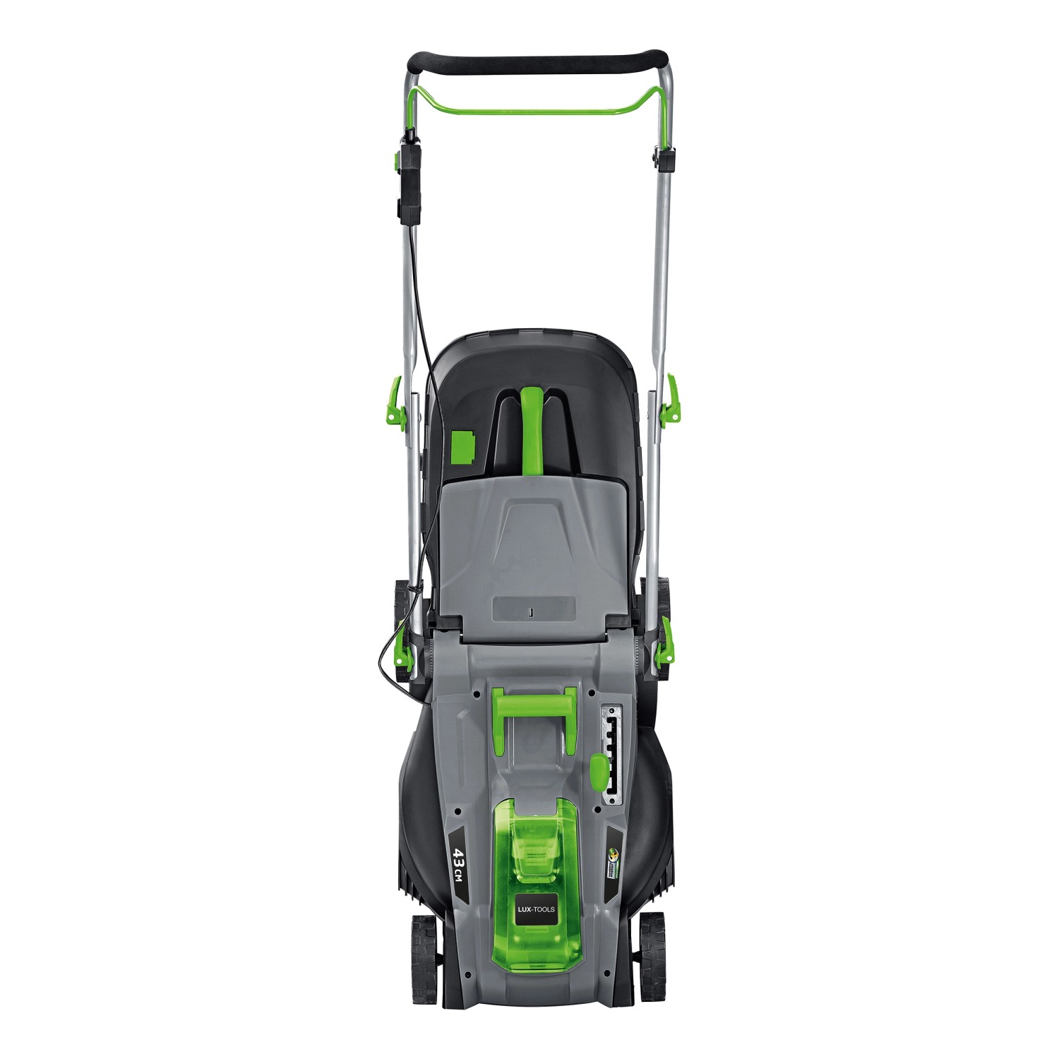 A 43 cm-es vágási szélességgel rendelkező fűnyíró legfeljebb 550 m2-es felülethez ajánlott. A központilag beállítható vágásmagasságot 25 mm és 75 mm között egyszerűen, 6 fokozatban állíthatja be.A vágásfelületre vonatkozó ajánlás arra a felületre vonatkozik, amelyen az ezzel a vágásszélességgel rendelkező fűnyírót szeretnénk használni. Nagyobb felületek esetén javasoljuk, hogy váltsanak az eggyel nagyobb modellre. 550 m2-es felület vágásához az akkumulátorokat a vágási folyamat során fel kell tölteni.