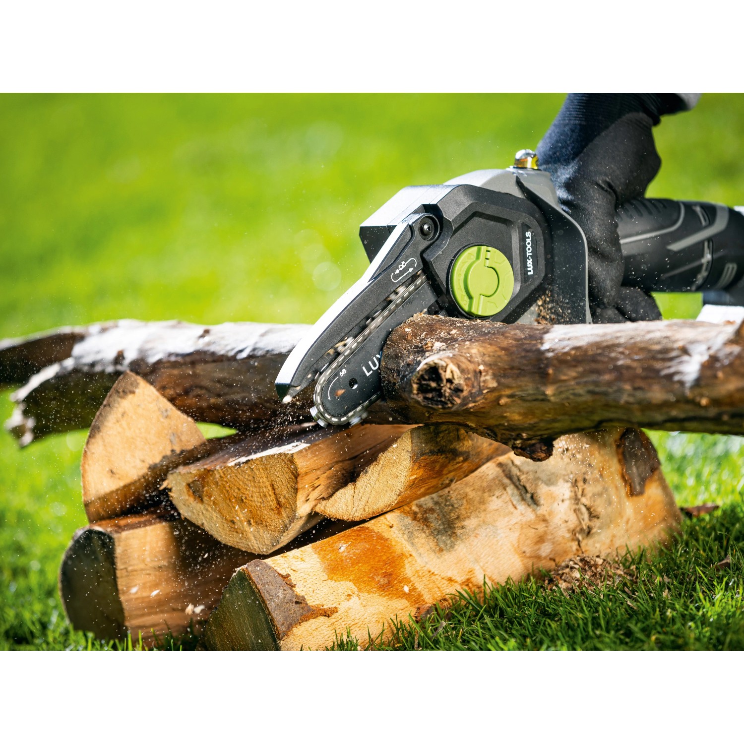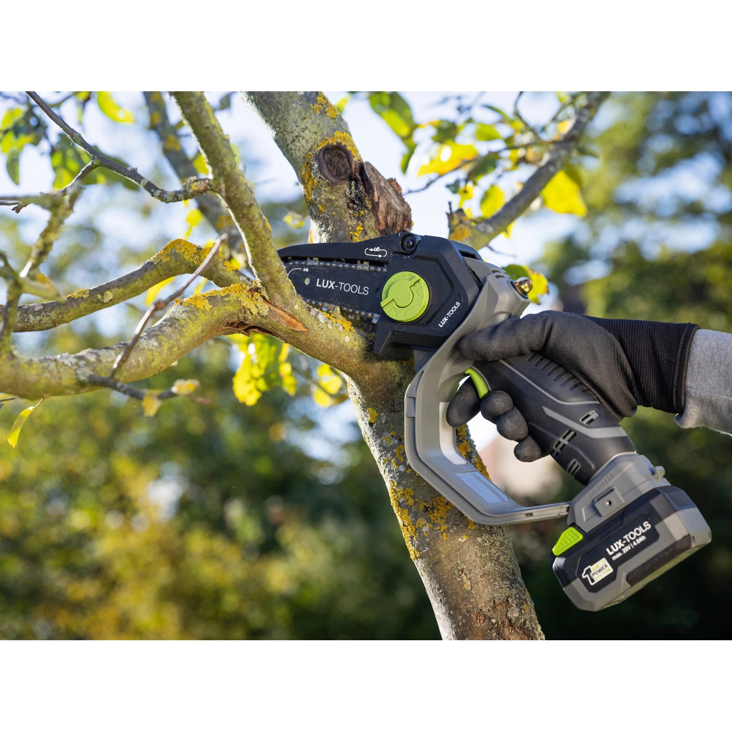 A LUX-TOOLS 20 V-os akkumulátoros A-EAS-20/154 Set ágvágó fűrész a teljesítmény és a felhasználóbarát használat ideális kombinációját kínálja Önnek minden kerti karbantartási és fafeldolgozási feladathoz.
