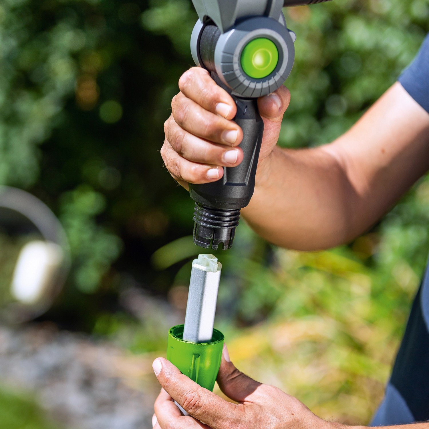 A teleszkópos ágvágó fűrész a LUX 1 PowerSystem része és egy, ehhez a sorozathoz tartozó 20 V-os (18 V névleges feszültségű), 2 Ah-s vagy 4 Ah-s lítium-ion akkumulátorral működtethető. 4 Ah akkumulátor használatát javasoljuk. Az akkumulátor és a töltőkészülék külön vásárolhatók meg.Egy akkumulátor - két világ: Az 1 PowerSystem
