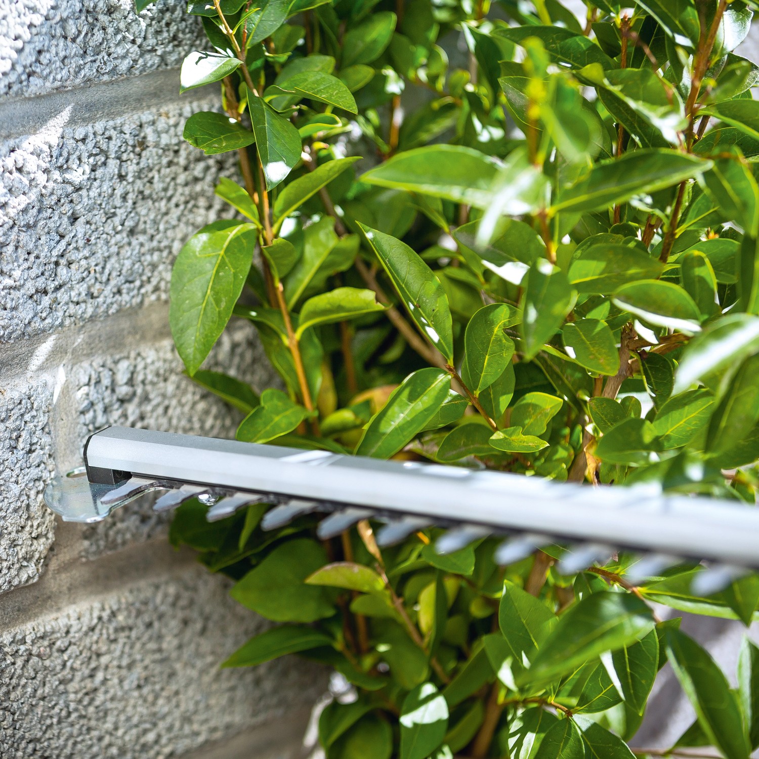 A teleszkópos sövényvágó hajlított fejjel rendelkezik, hogy a sövény tetejét is könnyedén nyírhassa. A sövényvágó-kiegészítő vágáshossza 41 cm, míg a vágási szélesség 16 mm. Az akkumulátoros teleszkópos sövényvágó így széles sövények nyírásához is jól használható. A sövényvágó pontos vágást tesz lehetővé a lézerrel köszörült, ellentétes irányú, kétoldalon vágó késekkel.Kényelmes teleszkópos sövénynyíró