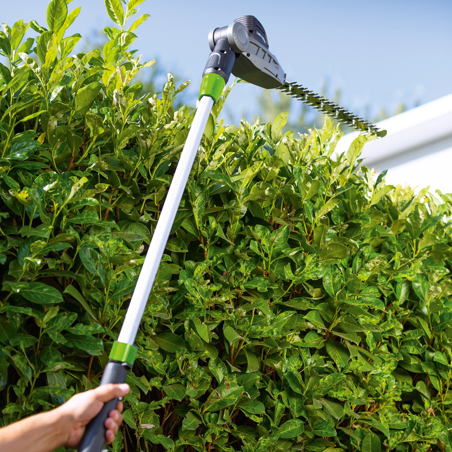 A LUX-TOOLS A-HS-20/41T 2 az 1-ben akkumulátoros teleszkópos sövényvágó és ágfűrész maximális mozgási szabadságot biztosít a kerti munkák során. A teleszkópos sövényvágóval gyorsan és halkan vághatja, formázhatja és nyírhatja a sövényt és a bokrokat, míg a láncfűrész kiegészítő fák fűrészelésénél nyújt kényelmes megoldást.