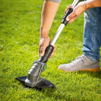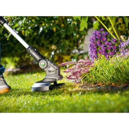 A nyírási munkák gyors előrehaladása érdekében a készülék 26 cm átmérőjű vágókörrel rendelkezik. Az ágyások és a virágok védelme érdekében a készülék növényvédő kengyellel rendelkezik. Az akkumulátoros szegélynyíró ezen kívül egy elforgatható, lesarkított vágófejjel is rendelkezik, melynek köszönhetően a dőlésszög módosítható. Így a nehezen elérhető helyekhez is könnyen hozzáfér.