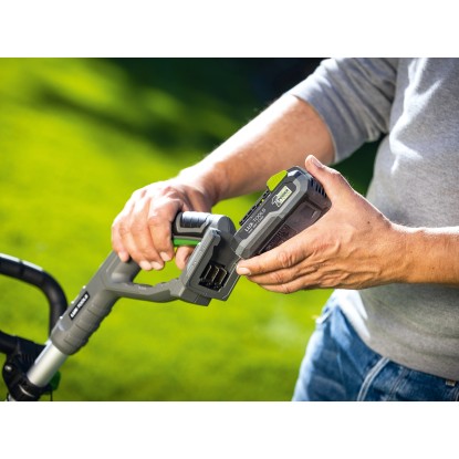 Az akkumulátoros szegélynyíró a LUX 1 PowerSystem része és egy, ehhez a sorozathoz tartozó 20 V-os (18 V névleges feszültségű), 2 Ah-s vagy 4 Ah-s lítium-ion akkumulátorral működtethető. A csomagban található 2 Ah akkumulátor használatát javasoljuk. Ez kb. 30 perces üzemidőt biztosít a készülék számára. A mellékelt töltőkészülékkel 5 órán belül feltölthető.