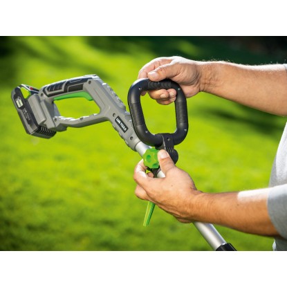 Ezen kívül az akkumulátoros szegélynyíró kihúzható. A kényelmes magasságállítással kiegyenlíthetők a testmagasságok közötti különbségek. További hasznos jellemzője a tetszés szerint állítható plusz markolat, melynek használatával két kézzel vezetheti a készüléket, elősegítve a kényelmes munkavégzést.