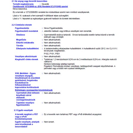 | Alk. gyermekjátékhoz (DIN EN 71-3 bevizsg.): | Gyermekjátékhoz alkalmas |