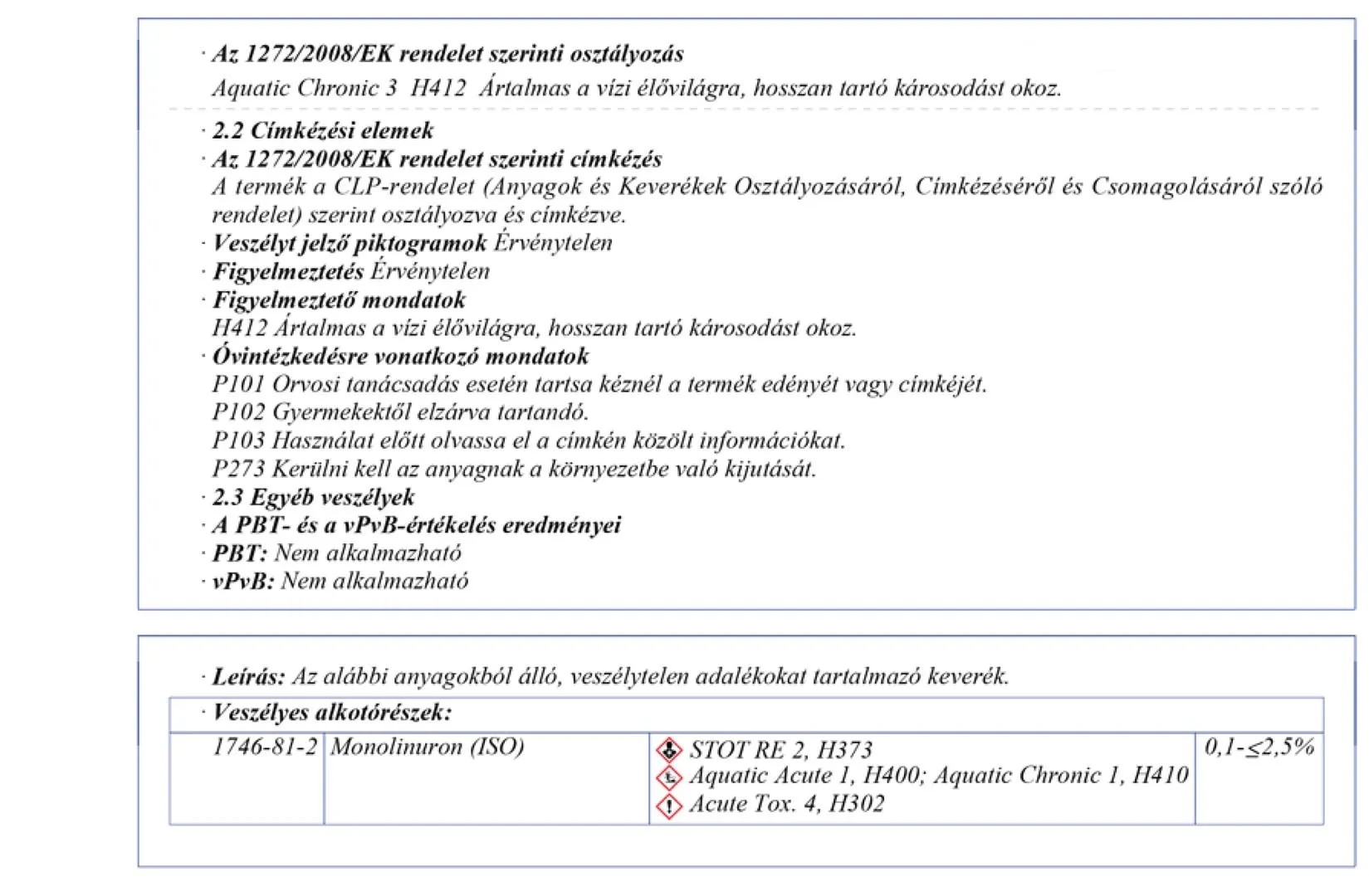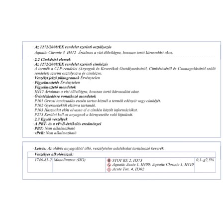 - Előírásszerű használat mellet ártalmatlan a vízinövényekre, halakra és mikroorganizmusokra.
