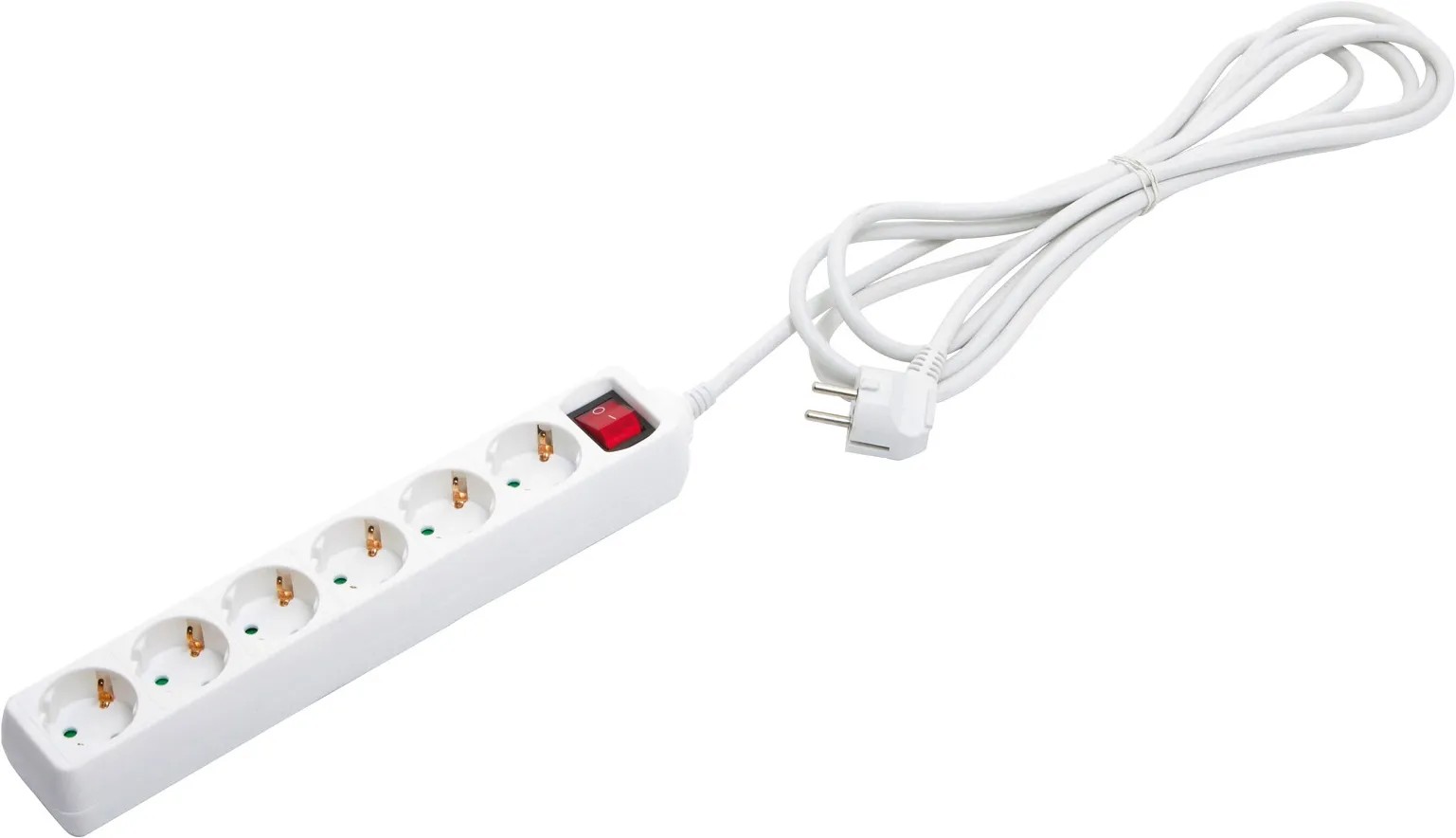 Csatlakozóaljzat kapcsolóval 6 részes fehér 3 m