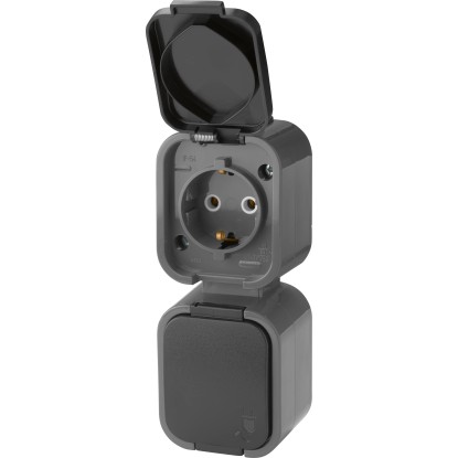 A Schuko csatlakozóaljzat egyaránt használható beltéren és kültéren, és például a nappaliban, a pincében vagy a garázsban is használható. Összesen két csatlakozóaljzat van. Egyenként 230 V feszültségre tervezték őket 16 A névleges áramerősség mellett. A praktikus, csapfedélnek köszönhetően a csatlakozóaljzat használaton kívül takarva marad. IP 54-es védelmi fokozattal rendelkezik. A Schuko csatlakozóaljzatot függőleges szerelésre tervezték.
