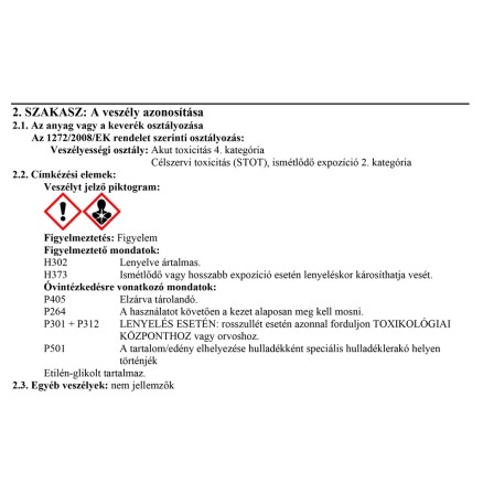 | Fagyálló védelem típusa: | Hűtő fagyálló |