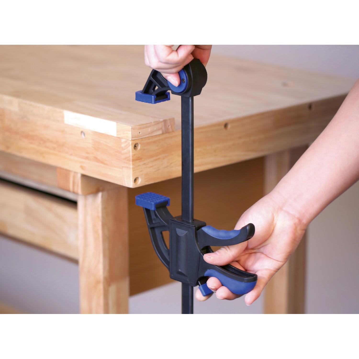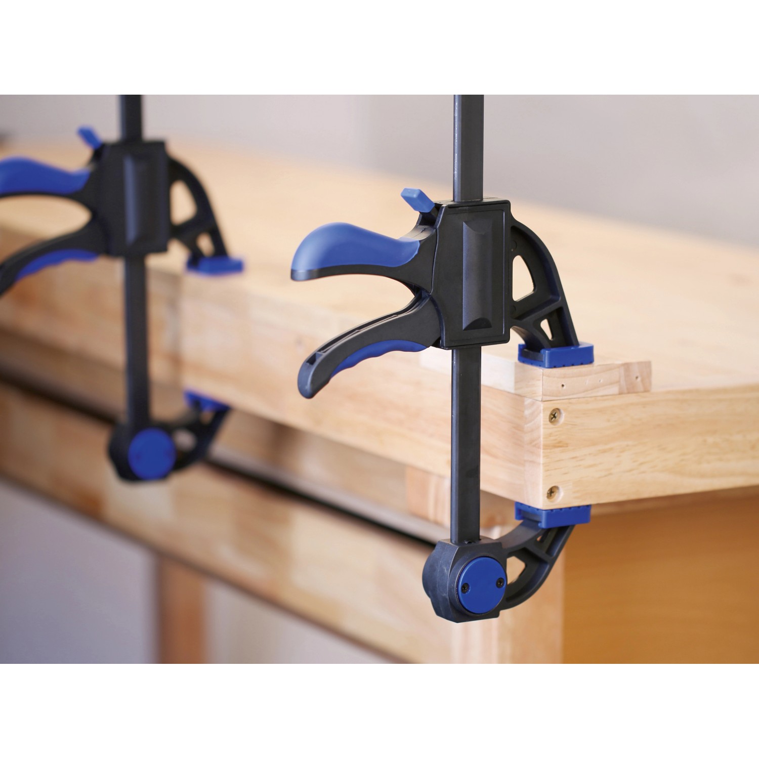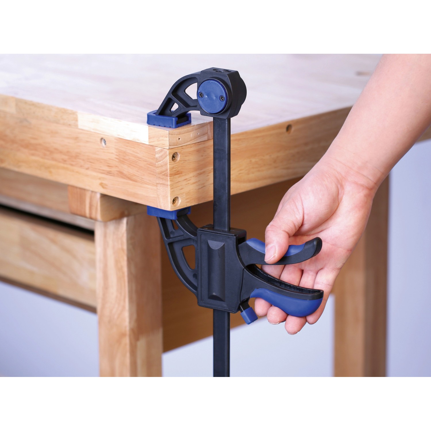 A LUX-TOOLS egykezes szorító praktikus eszköz a műhelyben, mert szorításra és támasztásra használható. Befogási mérete 300 mm. A könnyű kezelhetőség érdekében az egykezes szorító egy szorítókarral felszerelt. A csomag két darabot tartalmaz.