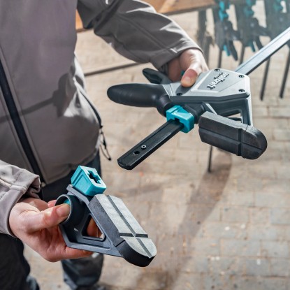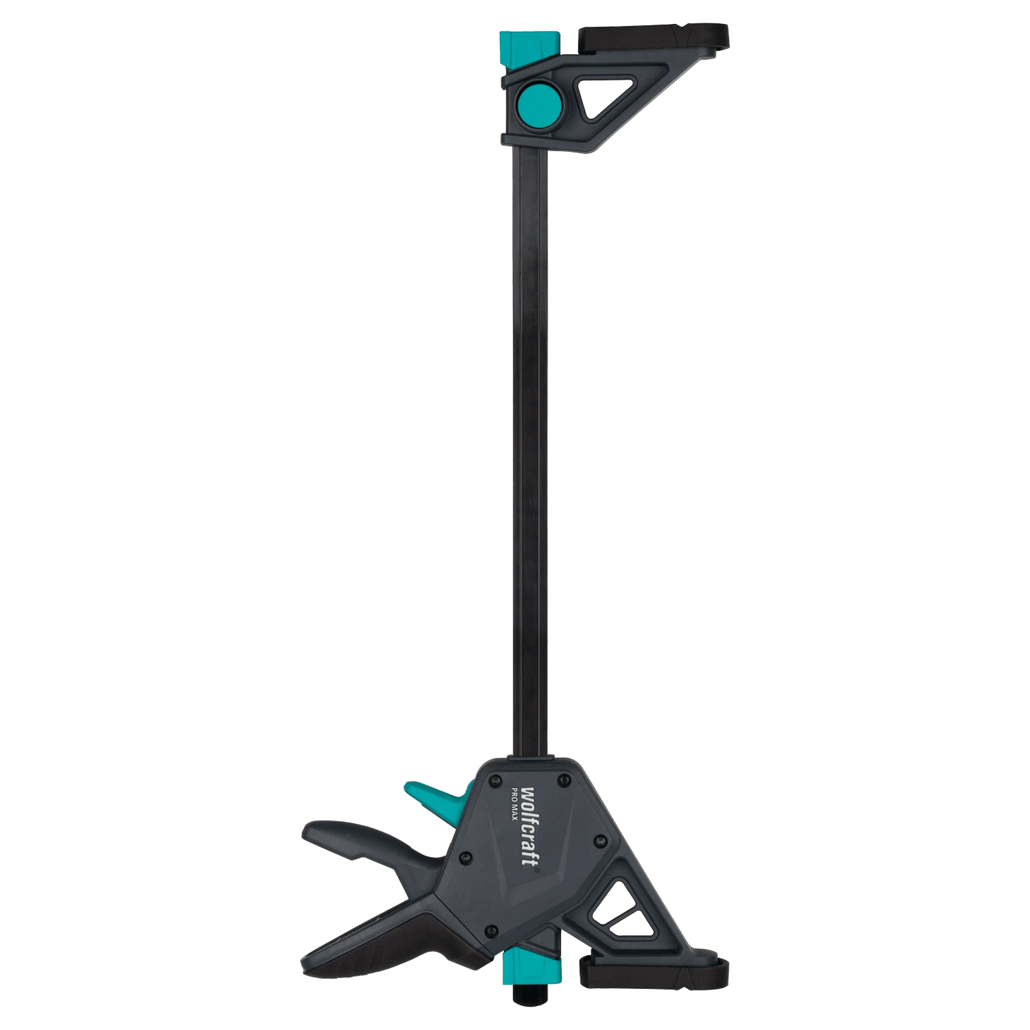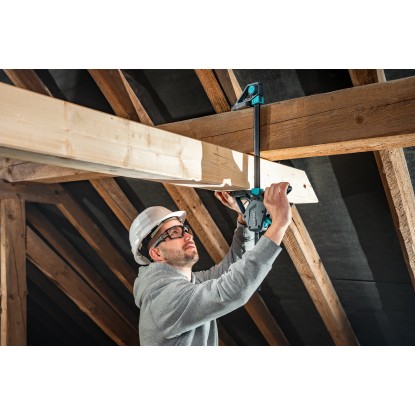 A Pro Max egykezes szorító a Wolfcraft legerősebb egykezes szorítója. A legmagasabb professzionális igényekre fejlesztették ki, és átgondolt formatervezésének köszönhetően felülmúlhatatlan munkaérzetet és biztos tartást biztosít Önnek. A Pro Max intelligens pumpamechanikája nemcsak lépésről lépésre szabályozható befogást tesz lehetővé, hanem biztonságosan, egy kézzel is kinyitható. A speciális, karos kioldószerkezettel könnyedén, biztonságosan és ellenőrzött módon rögzítheti a szorítóerőt, és a befogópofa könnyedén eltolható. Az alacsony önsúlynak és az optimális geometriának köszönhetően a professzionális befogószerszám intuitív módon és még hosszabb ideig tartó sorozatmunkák esetén is fáradságmentesen kezelhető. A kezelés kényelmét az ergonomikus kialakítású, csúszásmentes, puha zónával ellátott 2 komponensű markolat fokozza. Kézi erejét csaknem minden különösebb erőkifejtés nélkül használja. Hatékonyan akár 250 kg-os szorítóerőre is képes. Különösen nagy tartóerejének köszönhetően a Pro Max rendkívül megbízható a hosszú távú használat során. A nagy, gumírozott befogófelületeknek és a különösen nagy, 110 mm-es kinyúlásnak köszönhetően a befogóerő elosztása a munkadarabot kímélő módon történik. V-profilú horonnyal rendelkeznek, amely biztos tartást biztosít a kerek anyagok befogásakor. Az eltolható távtartók védik a munkadarabot és állófelületként szolgálnak a beszorított munkadarabok lerakásához. A praktikus 2 az 1-ben funkciónak köszönhetően az egykezes szorító szerszám nélkül átalakítható terpesztéshez. A speciálisan edzett, csontprofillal ellátott acélsínnek és az üvegszál-erősítésű műanyagból (GRP) készült háznak köszönhetően a termék rendkívül robusztus és tartós. Ezenkívül a speciális lyukszerkezet rendkívüli teherbírást és alaktartást biztosít. A munkabiztonság növelése érdekében a sínek sarkai lekerekítettek. A Pro Max egykezes szorító különböző befogási szélességű és nyújtástartományú változatokban kapható.