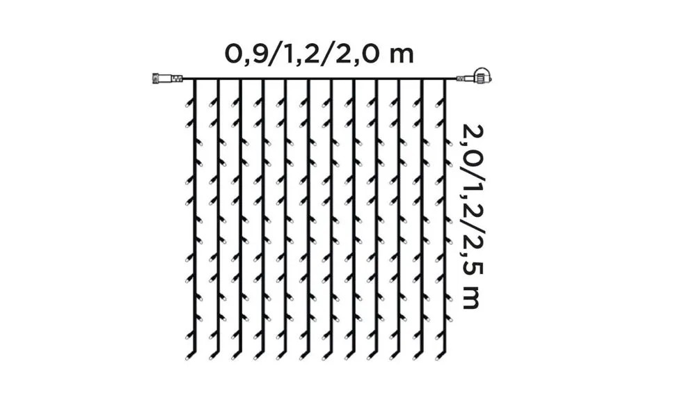 Dekortrend Crystalline toldható LED fényfüggöny 2 m x 0,9 m 192 db meleg fehér led-del, átlátszó kábellel.