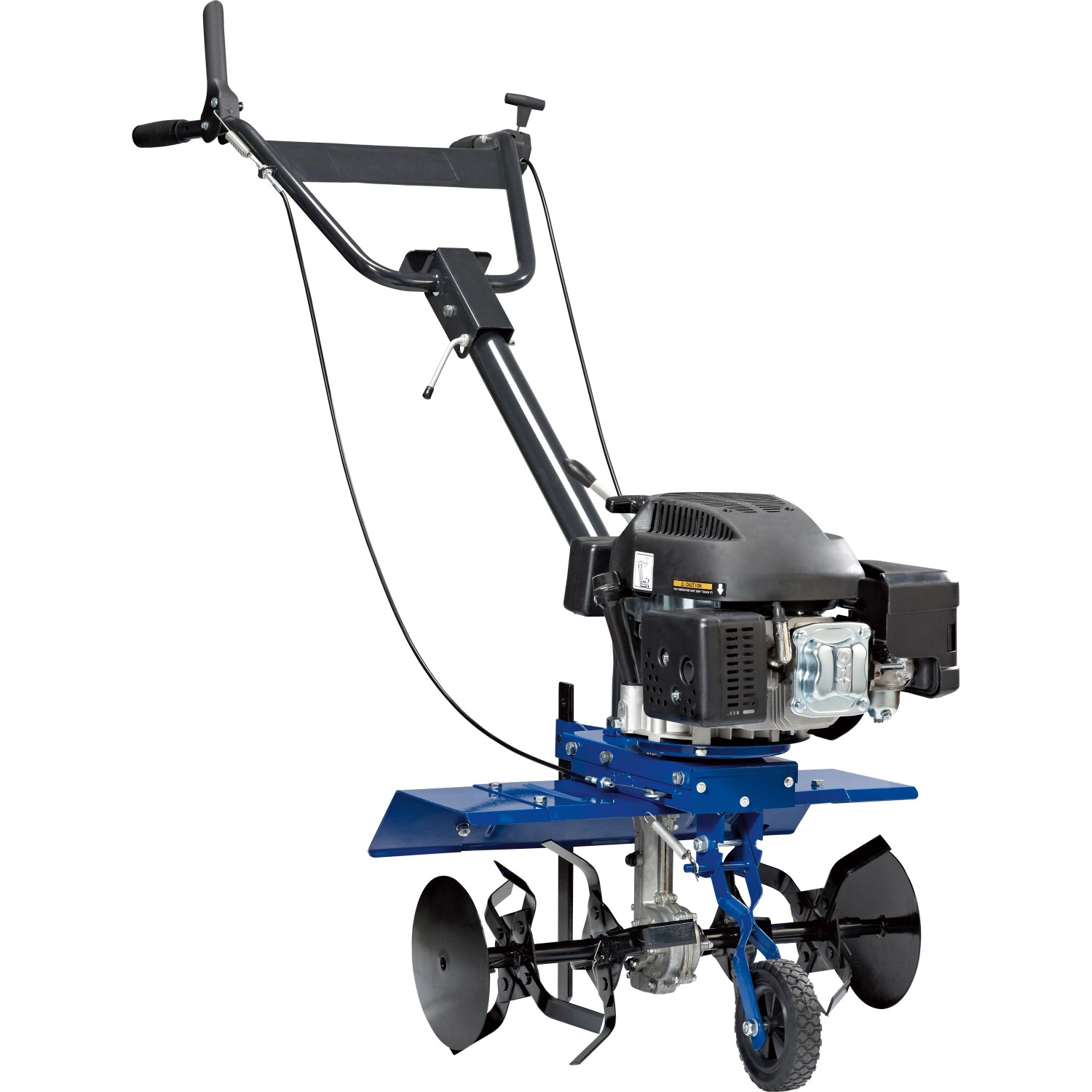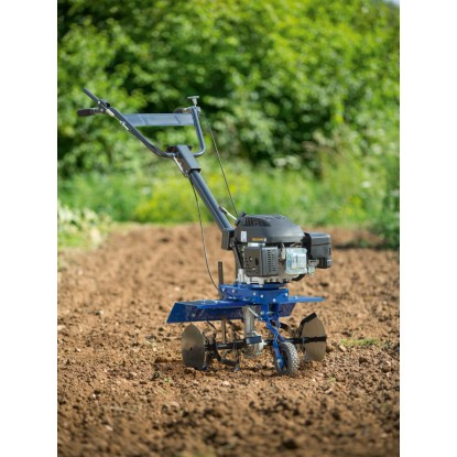 A LUX-TOOLS B-BH-196/60 benzines kapálógép 196 cm3-es hengerűrtartalmú négyütemű motorral rendelkezik, és bármilyen talaj gond nélkül megmunkálható vele. A négy darab négyágú kapatag átmérője 16 cm. Mindkét oldalon oldaltárcsák találhatók. Kellemes munkavégzést biztosít az ergonomikus, oldalt állítható nyélmarkolat és a védő- és szállítókerék. A munkaszélesség 60 cm, a munkamélység 13 cm.