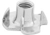 A horganyzott ütköző anya kalapács segítségével gyorsan és egyszerűen felszerelhető fába vagy műanyagba. A csavar becsavarásával az anya az alátét anyagába nyomódik és szilárdan rögzül.