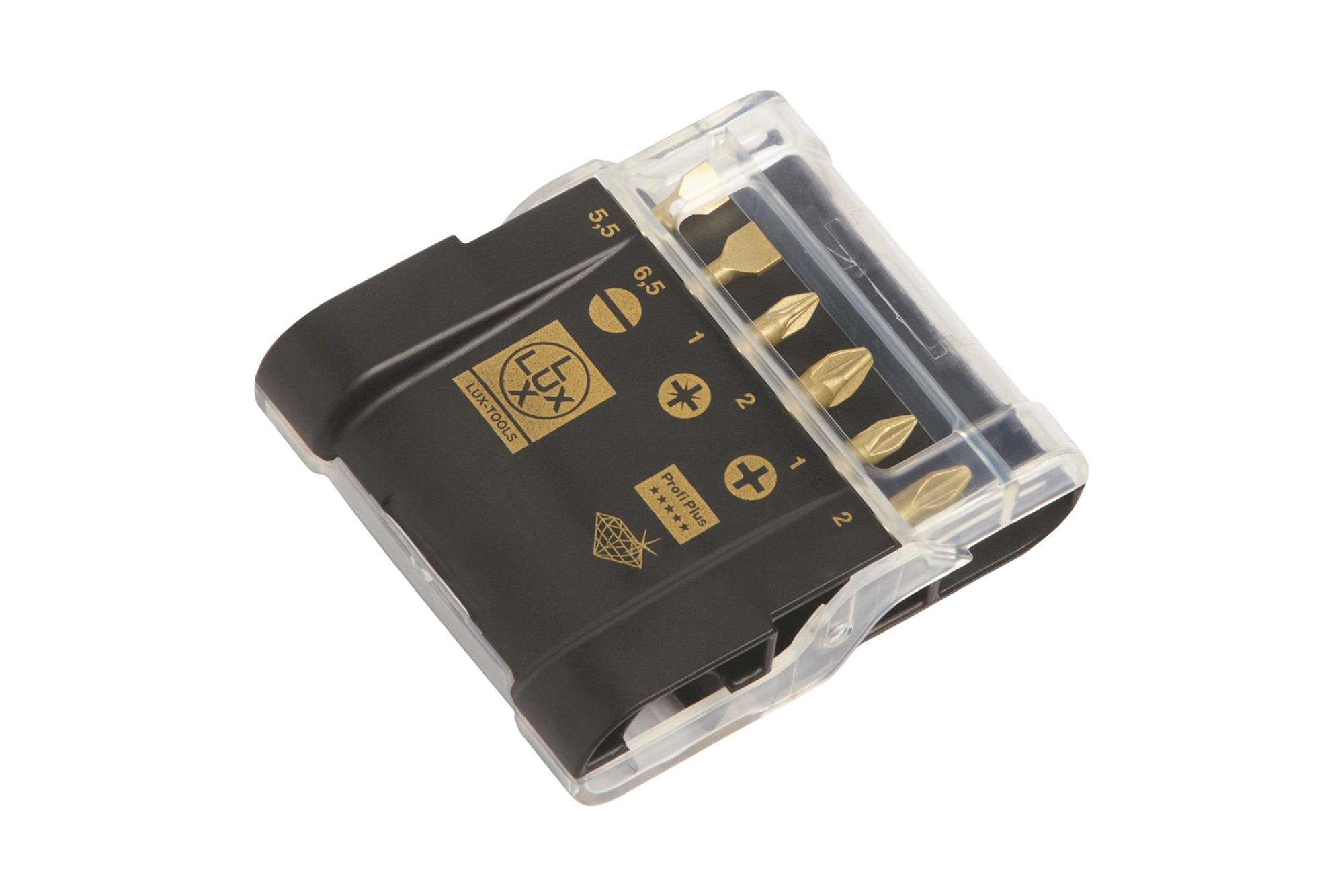 A 7 részes LUX-TOOLS professzionális gyémántbevonatú csavarbehajtó készlet különleges edzett kivitelű, ami hosszú élettartamot biztosít. A csavarbehajtó bitek gyémántbevonatú profilja biztos bennmaradást garantál a csavarfejben (a csavarhúzó nem ugrik ki a csavarfejből). A készlet mágneses bittartót, valamint egy-egy alábbi méretű bitet tartalmaz: Egyhornyú 5,5 mm, egyhornyú 6,5 mm, PH1, PH2, PZ1 és PZ2.