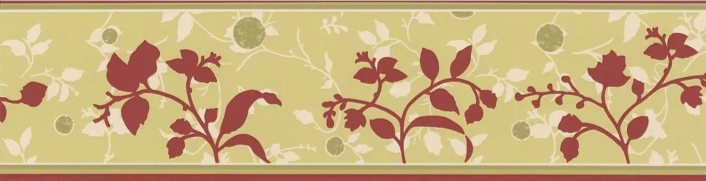 Modern stílusú virágos bordűr zöld és bordó színekkel. Színtartó, könnyen tisztítható anyagból készült.