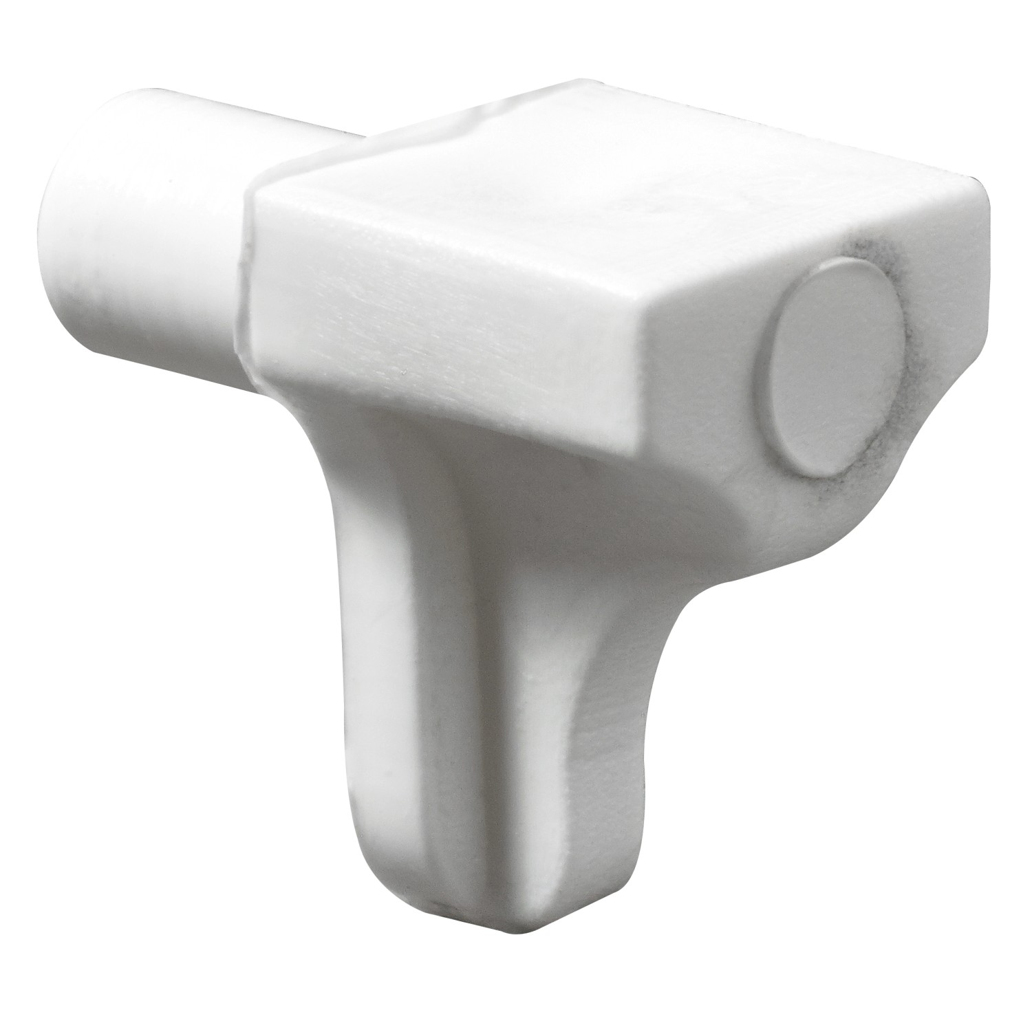 Műanyag polctartó polc- vagy fióklapokhoz. Lyuksoros (átmérő: 5 mm) vagy átmérő: 5 mm-es furatú bútorokhoz. Csappal a teherbírás erősítésére.