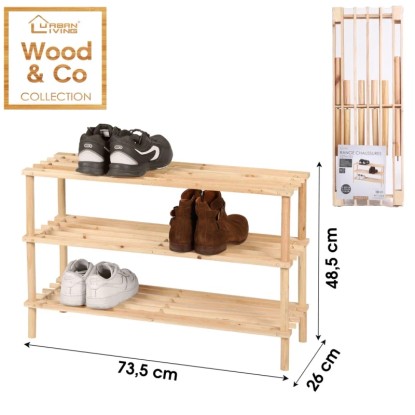 3 szintes fa cipőtároló natur fa színben.