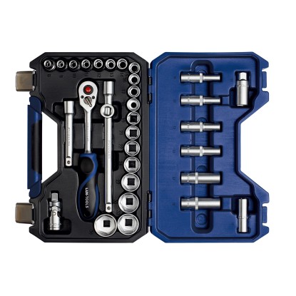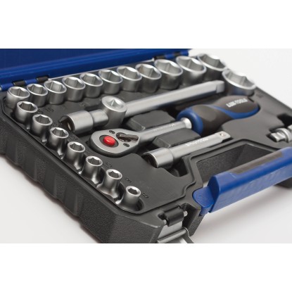 A LUX-TOOLS dugókulcs klt. 12,5 mm (1/2") és 12,5 mm (1/2") egy 32 részes, kiváló minőségű króm-vanádium ötvözésű acélból készült készlet. Csavarok rögzítésére és lazítására ideális.