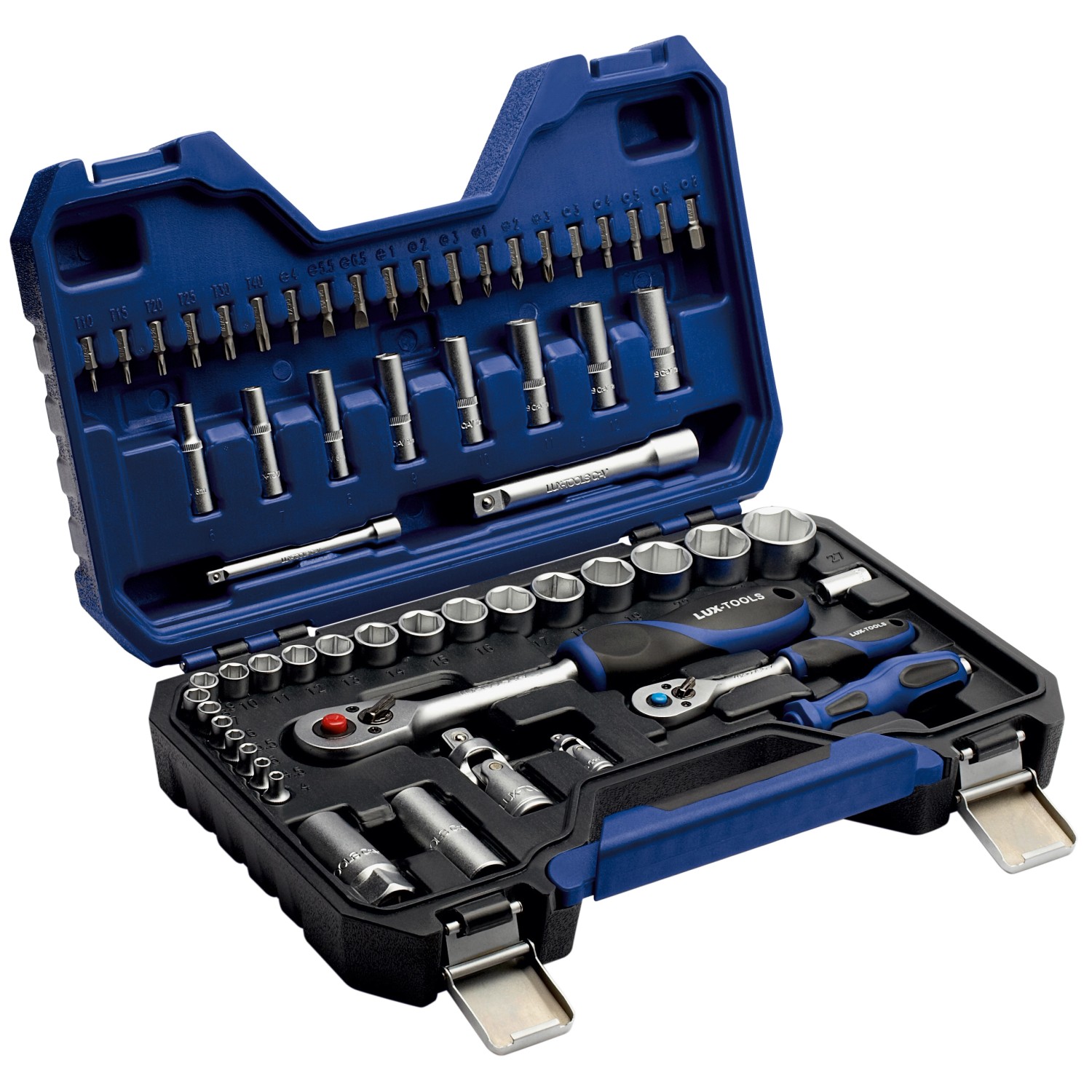 A gazdagon felszerelt LUX-TOOLS STS-59 Comfort dugókulcskészlet megfelelő kofferben egy kiváló minőségű, 59 darabos készlet számos alkalmazási területhez és különböző erőátvitelekhez. Tartalmaz dugókulcsokat, biteket és racsikat számos szokásos méretben. Ugyanakkor megbízható minőségű, így hobbiszinten gyakori használatra alkalmas. Ez a sokoldalú szerszám négy- és hatlapfejű csavarok vagy anyák, valamint imbuszcsavarok vagy klasszikus csavarok meglazítására vagy meghúzására alkalmas szerelés vagy gépjárművel kapcsolatos munkák során.