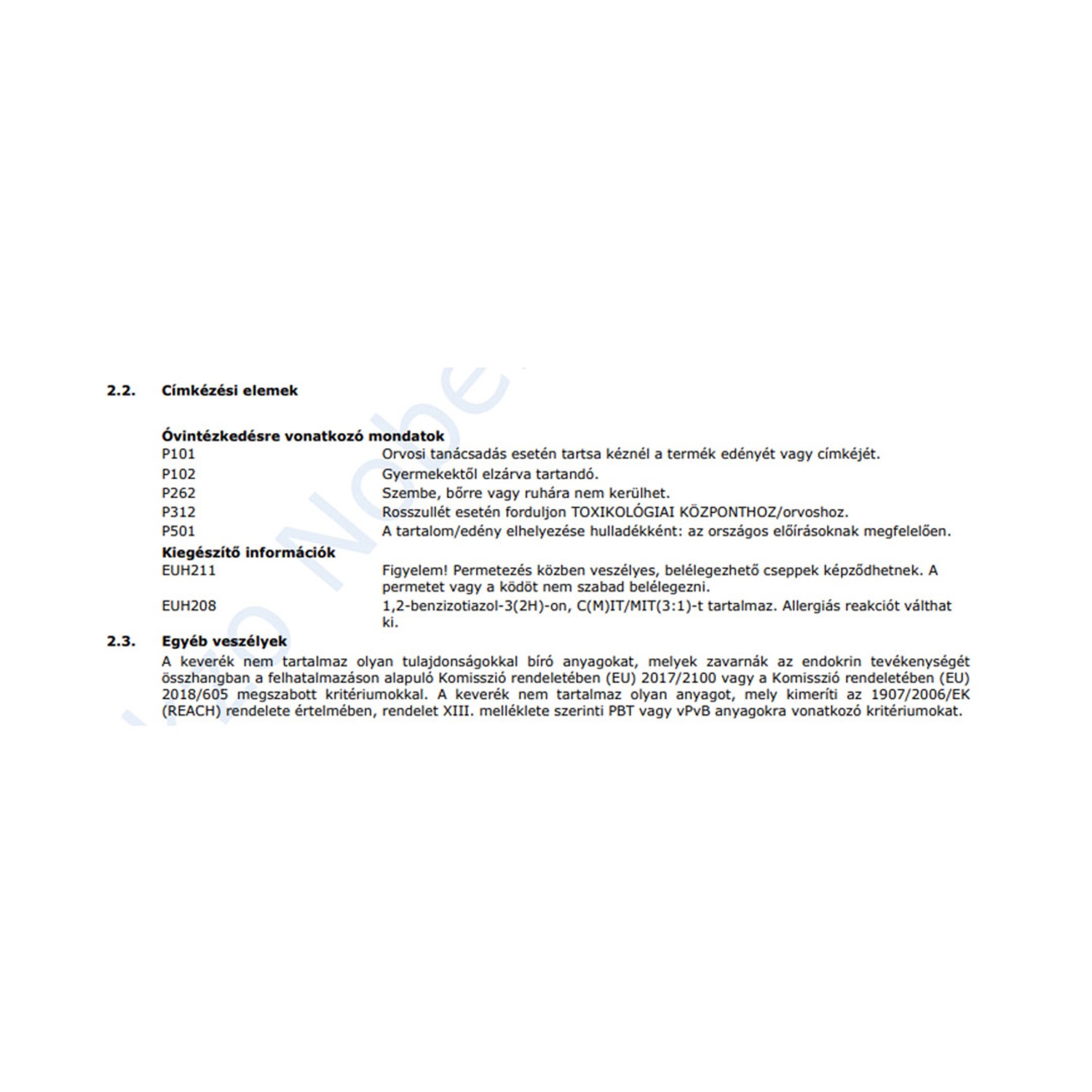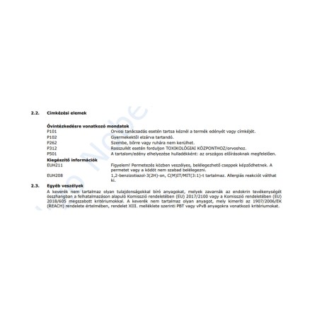 | Alk. gyermekjátékhoz (DIN EN 71-3 bevizsg.): | Gyermekjátékhoz nem alkalmas |