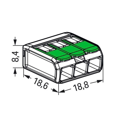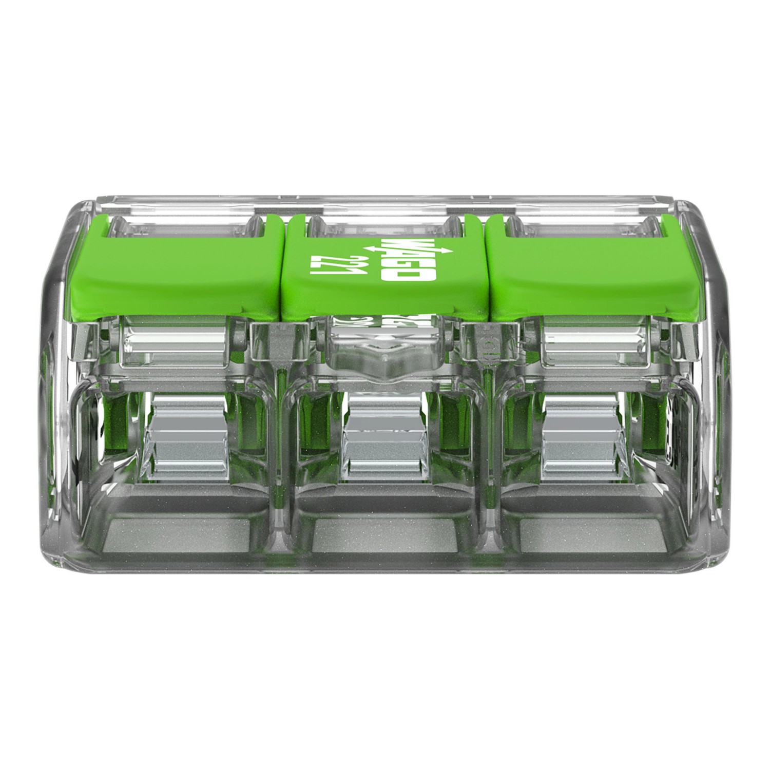 A Wago 221-423 három vezeték bekötésére alkalmas, karos vezetékösszekötő egyszerű és biztonságos megoldás az elektromos kötésekhez. Ezzel a praktikus vezetékösszekötővel könnyedén kötheti össze az összes szokványos vezetéktípust - a finomtól a többszálasig - 0,14 és 4 mm2 közötti keresztmetszettel.