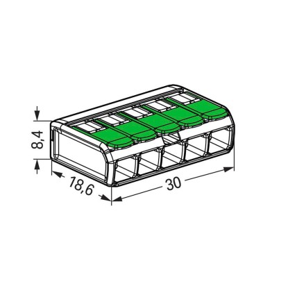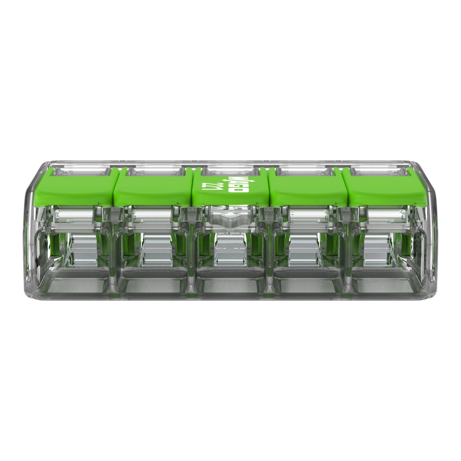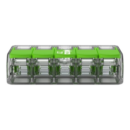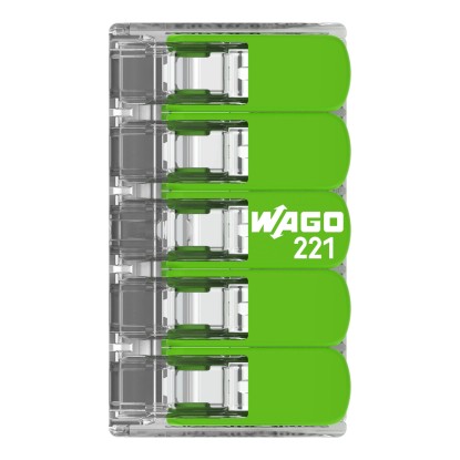 A Wago 221-425 öt vezeték bekötésére alkalmas, karos vezetékösszekötő egyszerű és biztonságos megoldás az elektromos kötésekhez. Ezzel a praktikus vezetékösszekötővel könnyedén kötheti össze az összes szokványos vezetéktípust - a finomtól a többszálasig - 0,14 és 4 mm2 közötti keresztmetszettel.