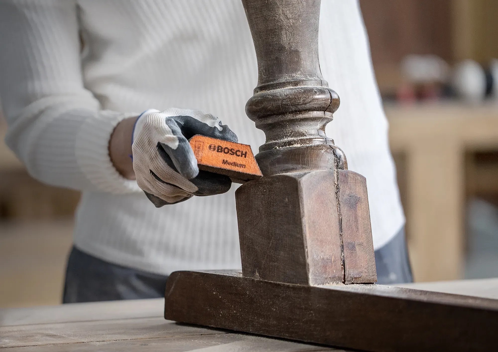 A Bosch Expert csiszolószivacs akár 5-ször hosszabb élettartamú, mint a Bosch C420 csiszolópapír - Néha a kézi csiszolásnak nincs alternatívája. Régebben probléma volt, hogy a hagyományos csiszolólapok a lekerekített felületek és az élek csiszolásakor gyorsan elhasználódtak. Gyakran szúrtak is, vagy megtörtek. Az egyetlen megoldás az volt, ha az ember sok csiszolólapot vásárolt, ami viszony nagy fogyasztást és sok hulladékot eredményezett. A csiszolóhabok ma már a Bosch Surface Structure technológiával készülnek. A Bosch Surface Structure a fejlett kötési technikákat és a felületi bevonatot kombinálja egymással, hogy a szemcse a lehető legjobban rögzüljön az alapra. Olyan erős, hogy a Bosch Expert Standard Block csiszolólap nem veszít szemcsézetéből a lekerekített felületek és az élek csiszolásakor. Ezenkívül minimálisra csökken a csiszolószivacs eltömődése, mivel a por egyszerűen kiütögethető vagy lemosható. Vannak olyan formák is, amelyek egyenletes nyomást gyakorolnak a felületre. A négyszögletes csiszolószivacsok ideálisak sík felületek és 90 fokos élek csiszolására. A Bosch Expert Standard Block csiszoló-habszivacs forradalmi a kézi csiszolásban.