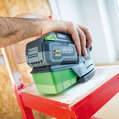 A multicsiszoló a praktikus LUX 1 PowerSystem sorozat része, és a sorozat kiváló minőségű lítium-ion akkumulátorával működtethető. A kívánt akkumulátort külön-külön is beszerezheti 2 Ah-s vagy 4 Ah-s változatban. A környezetbarát akkumulátoros működésnek köszönhetően nagy mozgási szabadsággal és rugalmassággal dolgozhat - zavaró kábelek nélkül, és anélkül, hogy a legközelebbi aljzattól függene.Kézreálló csiszológép praktikus extrákkal