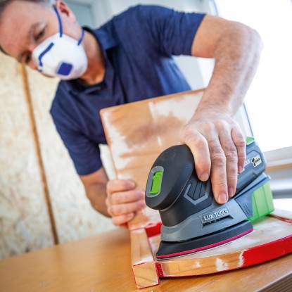 A kiváló minőségű LUX-TOOLS A-MS-20 akkumulátoros multicsiszoló lehetővé teszi a felületek, élek, szögek és díszítések tiszta csiszolását. Különösen alkalmas fa és fém csiszolásához.