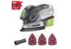 Teljesítménye 20 V (18 V névleges feszültség), magas, 11 000/perc (fordulat) rezgésszámmal és 100 mm x 150 mm-es csiszolófelülettel. A speciális vasalóformának köszönhetően az akkumulátoros csiszolóegér a sarkokat is optimálisan eléri.Rugalmas használat az akkumulátoros működésnek köszönhetően