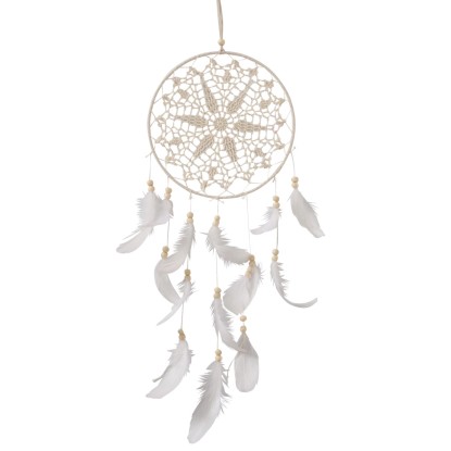 A Boltze Home Susan álomfogója lágy megjelenést visz a hálószobába vagy a gyerekszobába. Pamutból, poliészterből és tollból kézzel készített, így kerek formájával, krémfehér, valamint natúr színeivel nyugtató megjelenést kölcsönöz a helyiségnek.