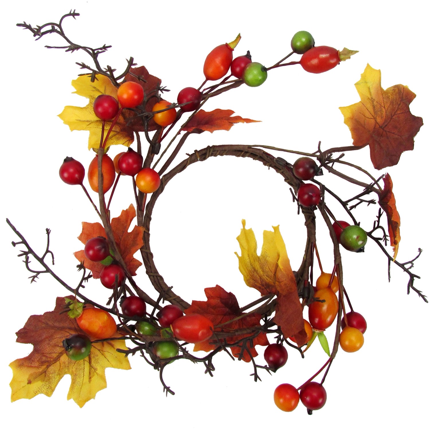 Dekorkoszorú bogyók levelekkel színes 20 cm átmérő