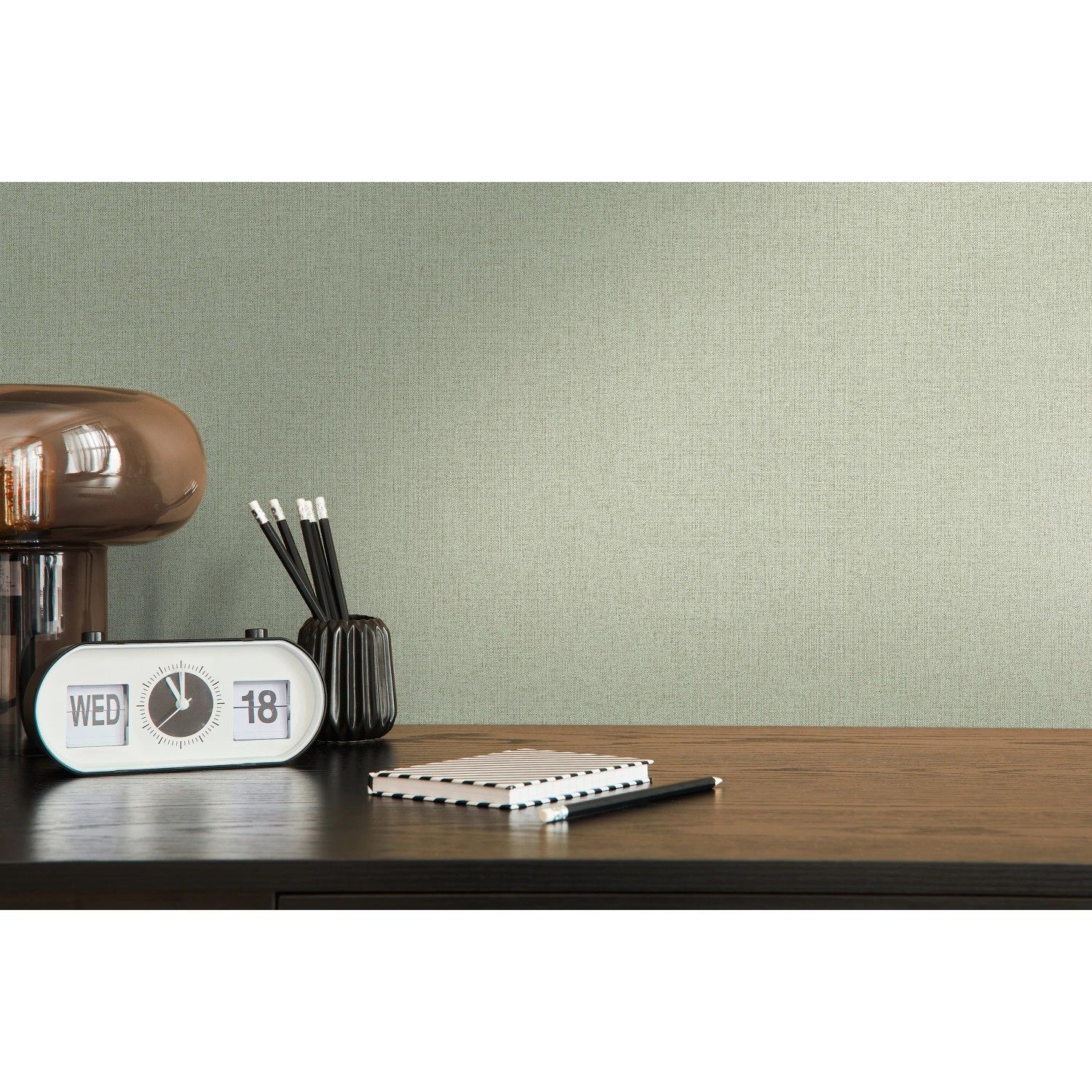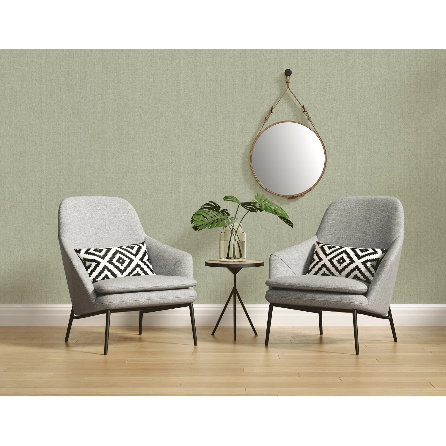 Az A.S. Création textilhatású uni fátyoltapétája zöld színével, enyhén strukturált és enyhén fényes felületével természetes hangulatot kölcsönöz a helyiségnek. A tapéták hangulatos otthont varázsolnak a falakból. Megtapasztalható a világos árnyalatok és a geometriai motívumok lágy fúziója.