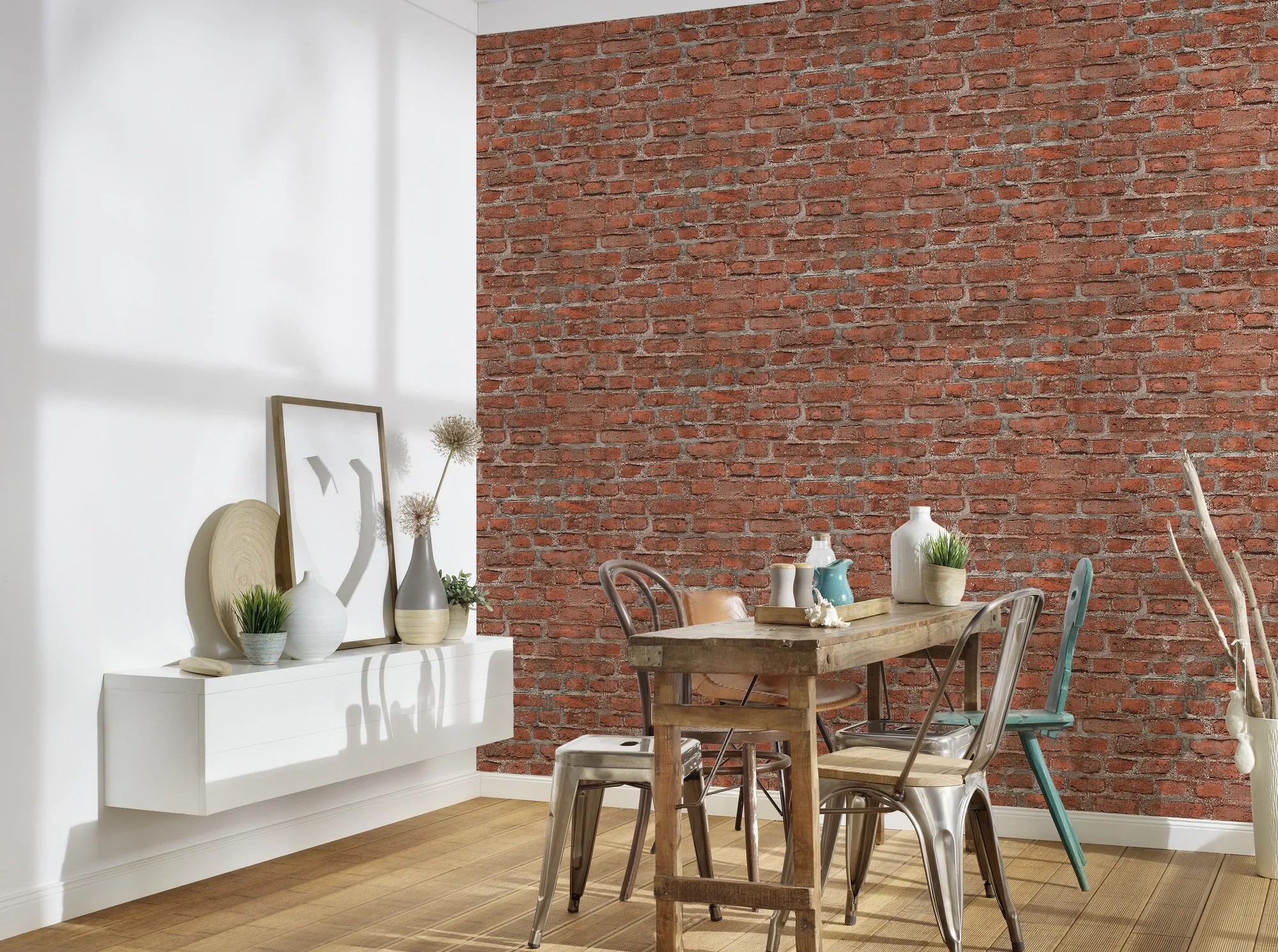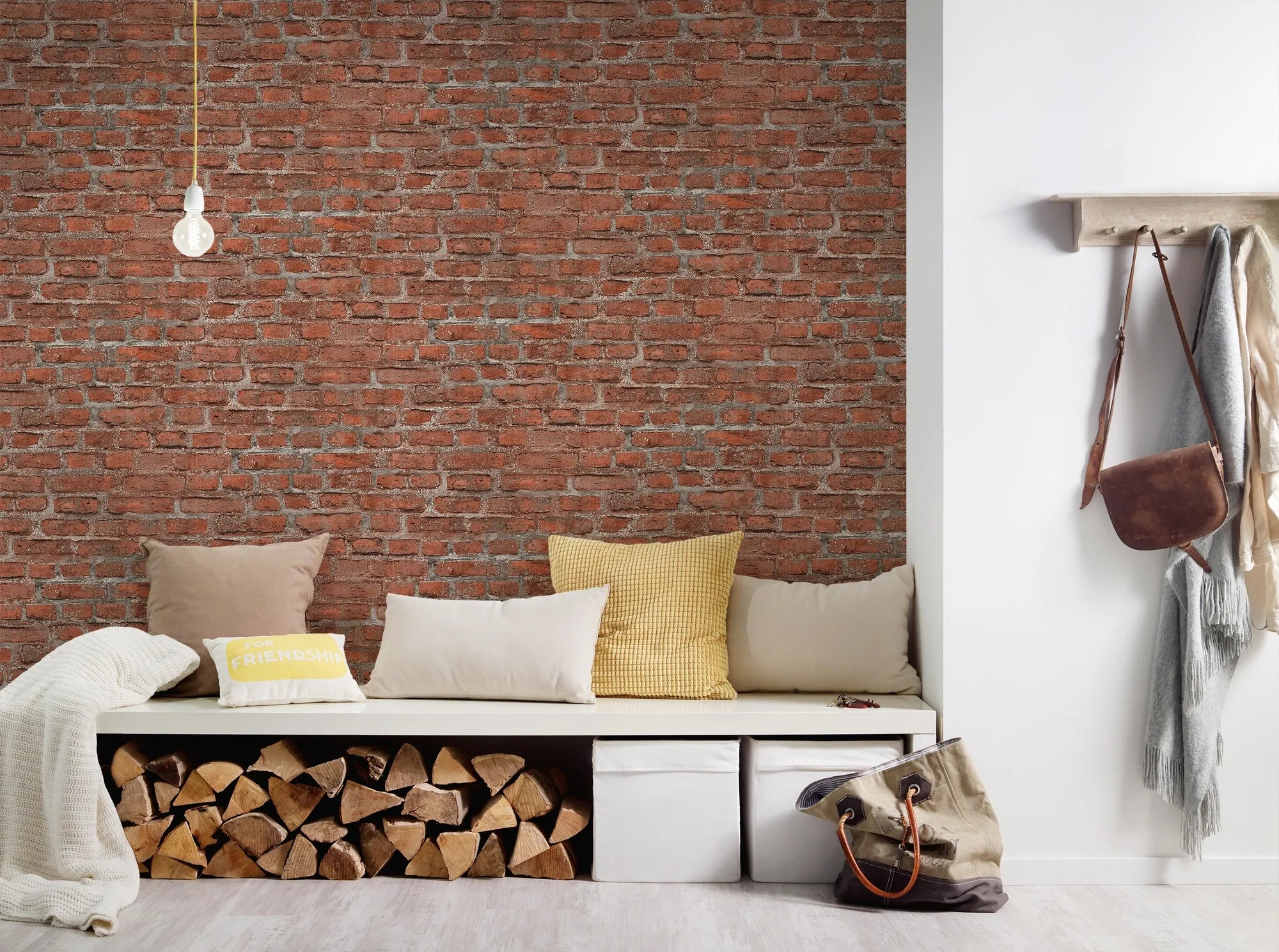 A 36139-2 tapéta piros tégla mintájával városi hangulatot és egyben hangulatos légkört teremt otthonában.