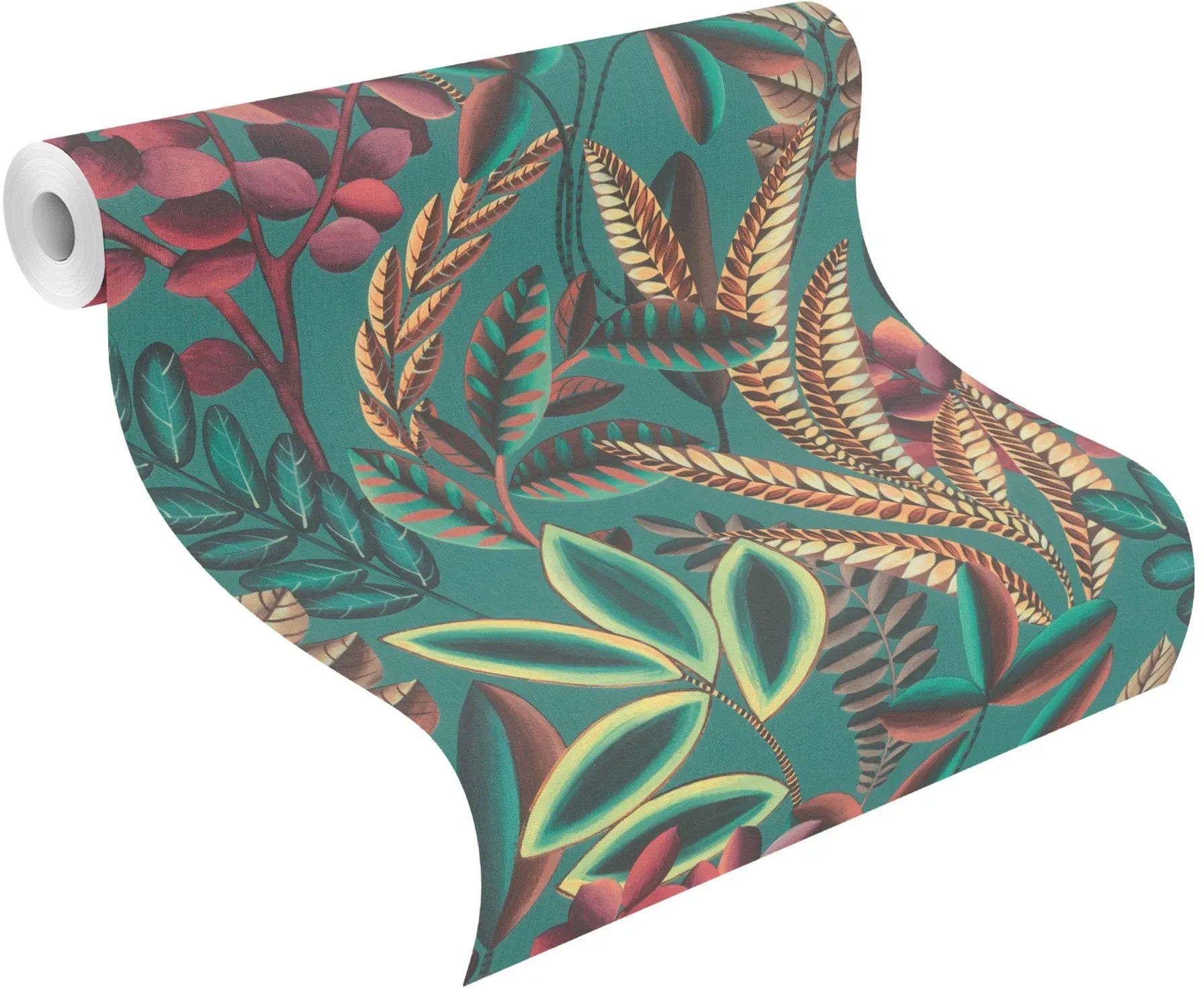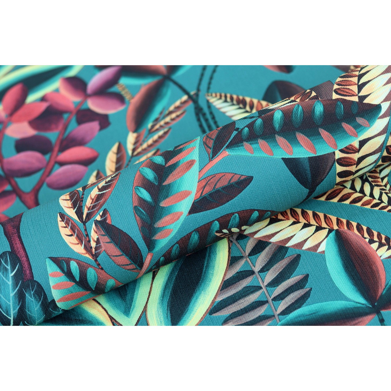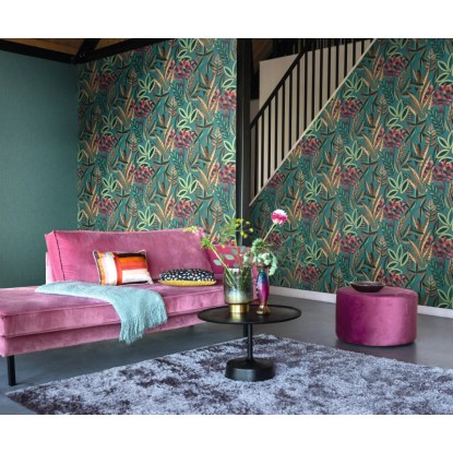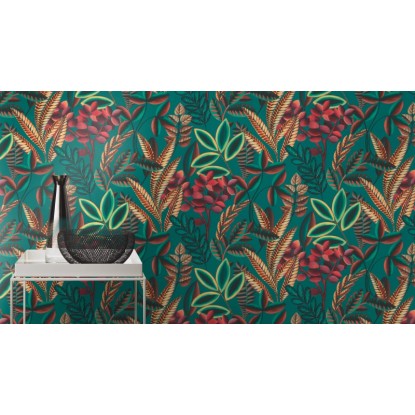 Itt a botanika világa találkozik az álomszerű grafikai tervezéssel. Stilizált levelek sokféle formában és méretben jelennek meg, és minden falat fantáziadús kerti paradicsommá varázsolnak. A kéktől fehér színátmenettel rendelkező háttér előtt a növények gyönyörűen jelennek meg a legkülönfélébb árnyalatokban, a levélzöldtől, a türkizkéktől az olívazöldig és az őszibarackig, lenyűgöző kontrasztot teremtve.
