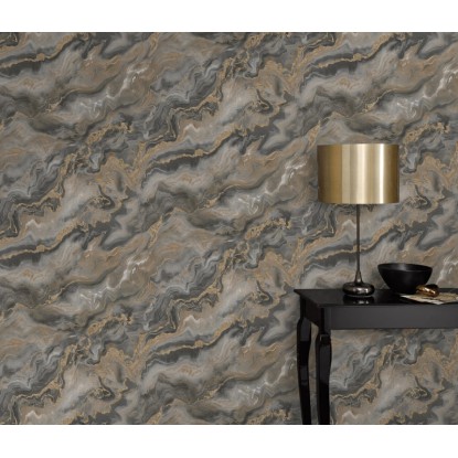Sötét szürke-arany márvány mintás tapéta.