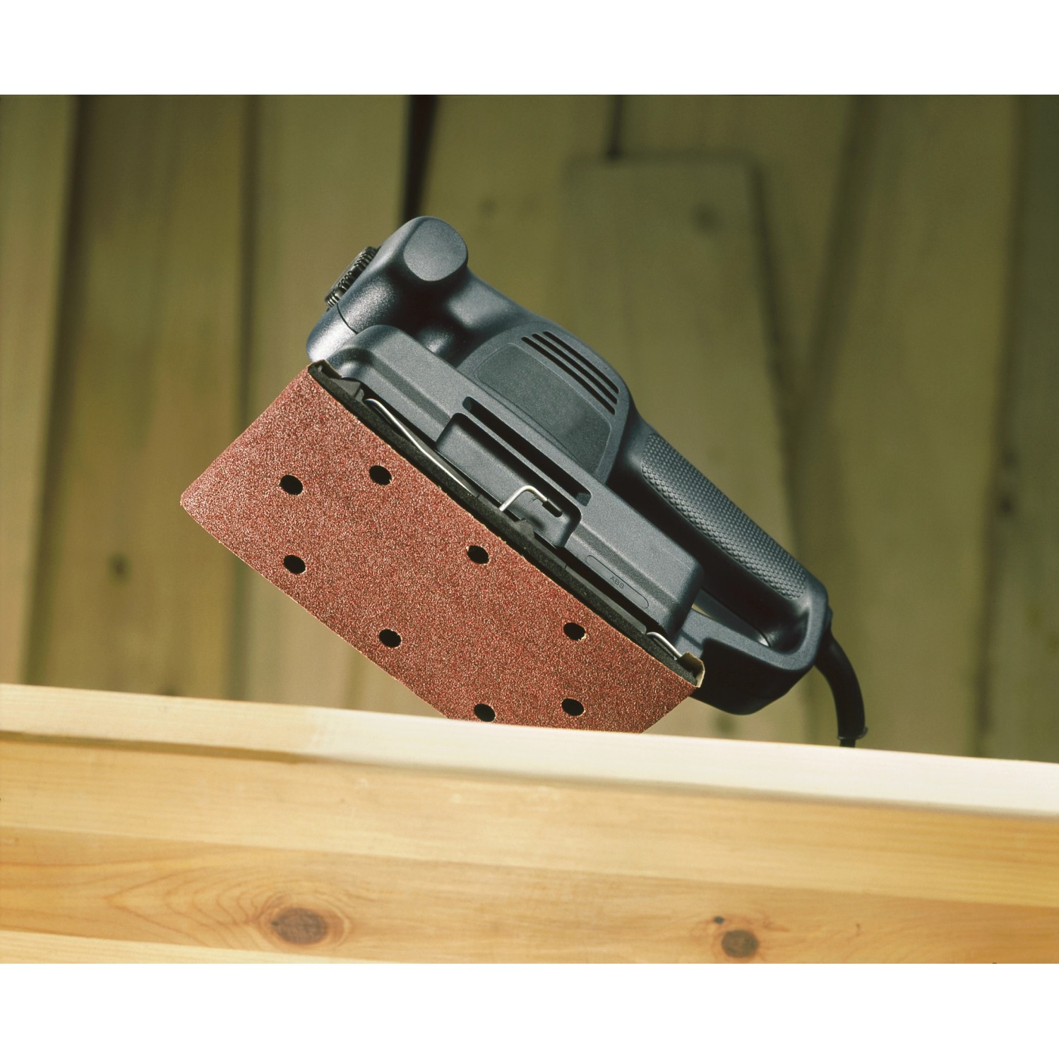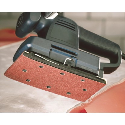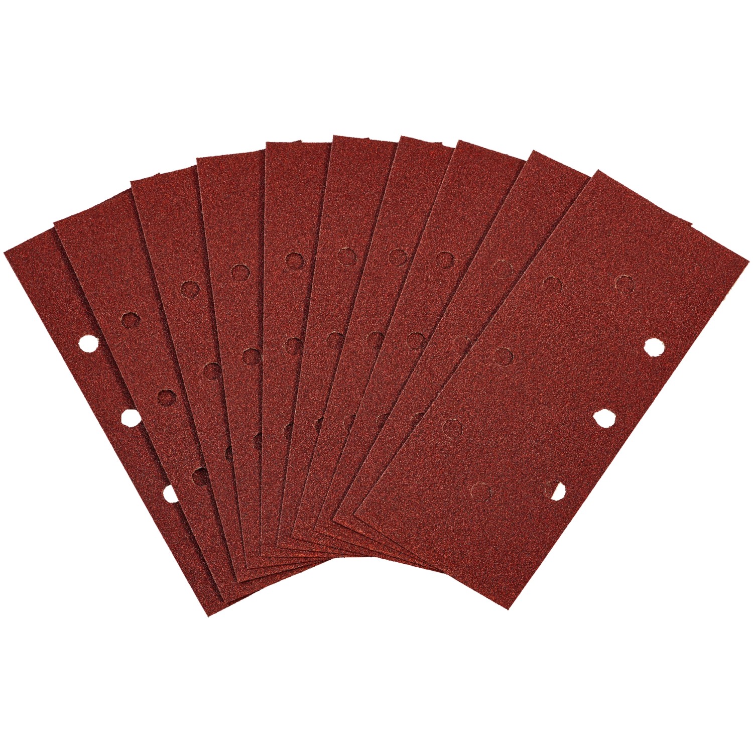A 93 mm x 230 mm-es LUX-TOOLS K80-as szemcseméretű csiszolószalag 8 lyukkal, alkalmas rezgőcsiszoógépekhez, és ideális faanyag és fém feldolgozásáshoz. a csomagolás 10 db csiszolószalagot tartalmaz.