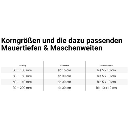 Ez a márvány zúzottkő optimális töltőanyag olyan gabionokba, amelyek lyukbősége 5 x 10 cm és falvastagsága 15 cm. Az anyagot rétegelve és hézagmentesen kell betölteni. Az anyagszükséglet kiszámításánál 10%-os biztonsági ráhagyással kell kalkulálni.