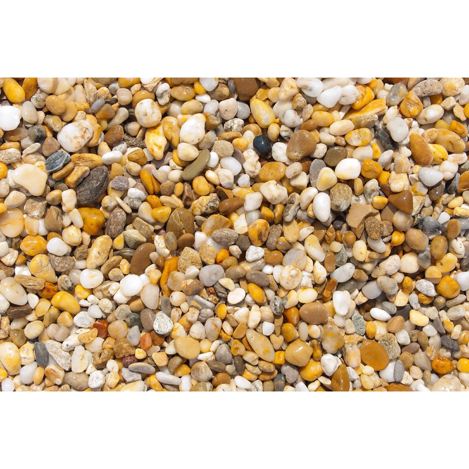A duplán mosott, sok lekerekített formájú kvarckövet tartalmazó folyami kavics kellemes színekkel rendelkezik. Kis arányban törött köveket is tartalmazhat.