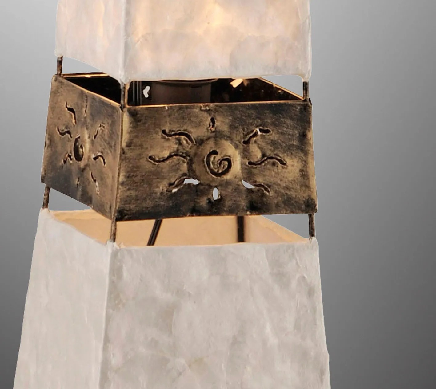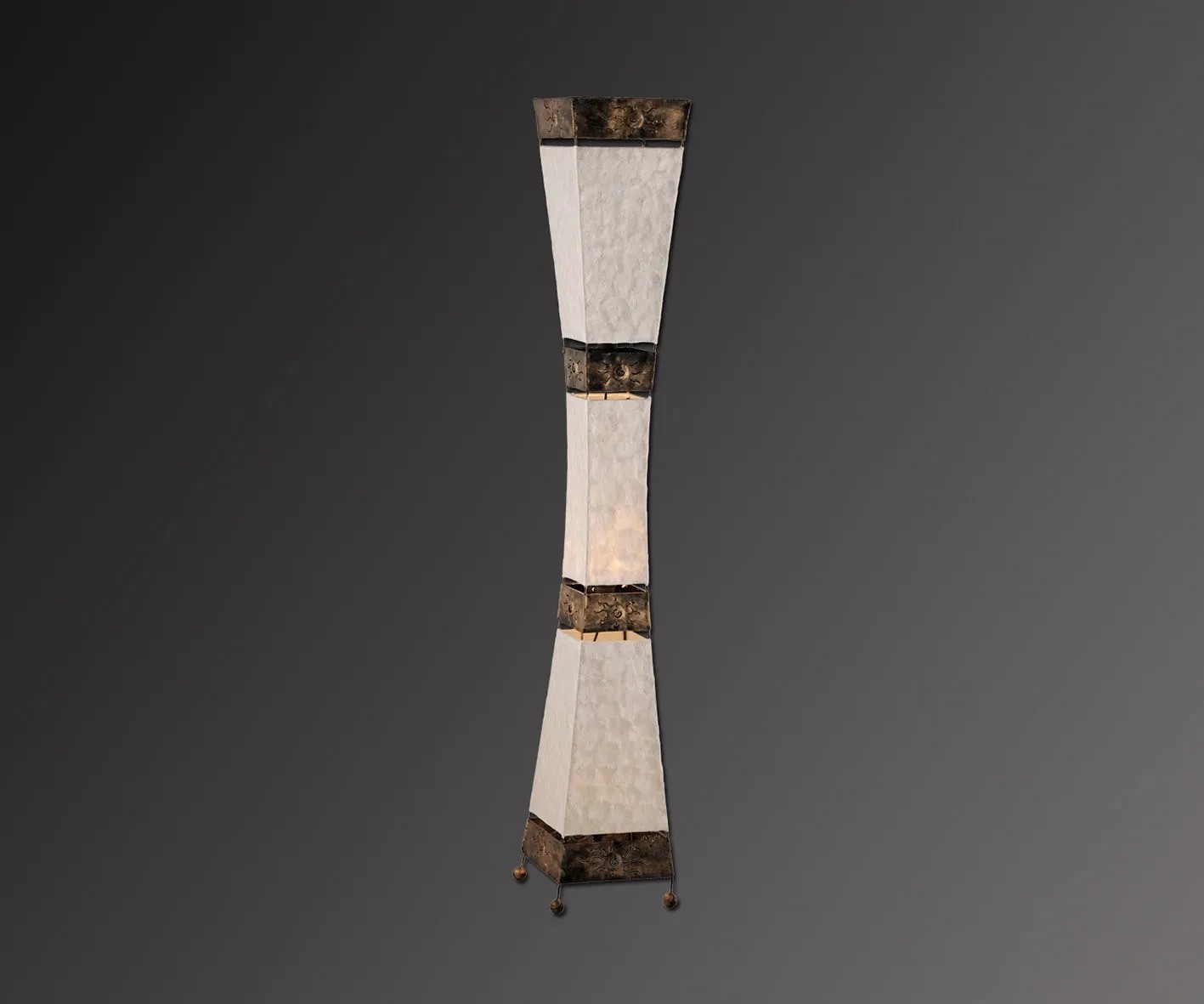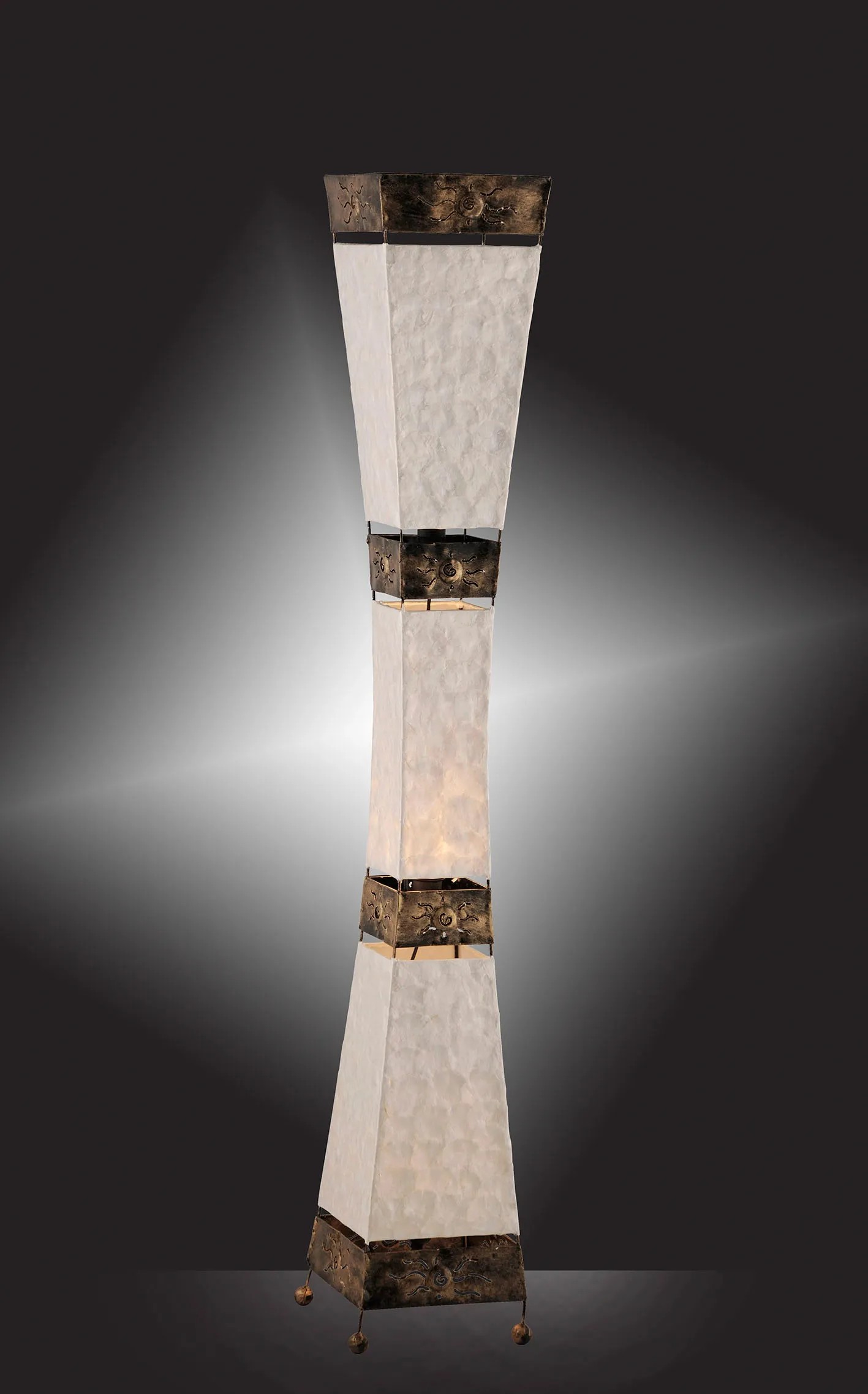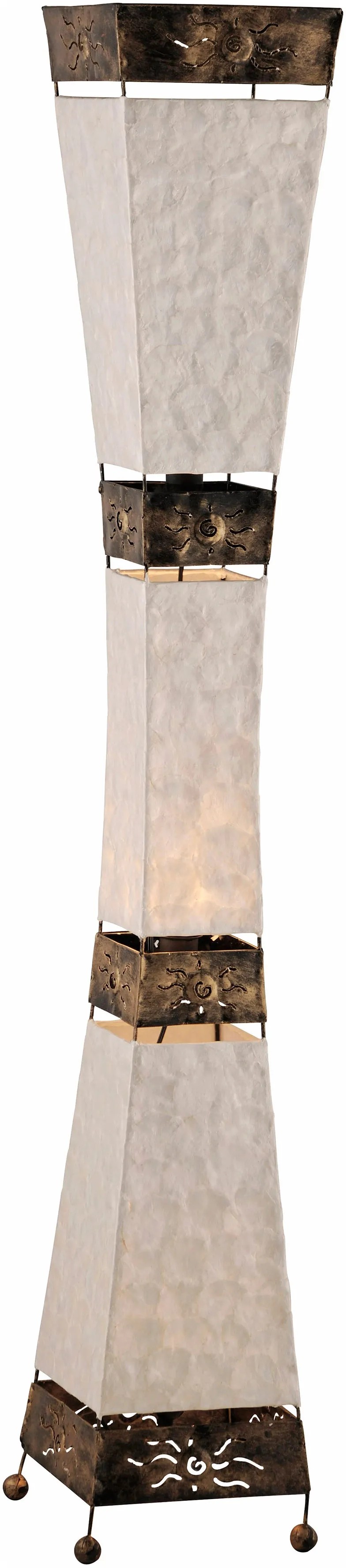 Vigye haza az afrikai életérzést! Az Abuja állólámpa kiváló minőségű anyagokból készült kézzel, szeretettel és gondossággal az Ön számára. A gyöngyház és a díszes fémből készült lámpatest nagyszerű kombinációja természetesen elegáns megjelenést kölcsönöz az állólámpának. A megújuló természetes termékek használatának köszönhetően minden lámpa egyedi. A lámpába három hagyományos E27-es, legfeljebb 40 wattos izzót helyezhet. Kombinálja az állólámpát egy tetszés szerinti izzóval. Az állólámpa kényelmesen be- és kikapcsolható a zsinórkapcsolóval.