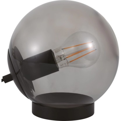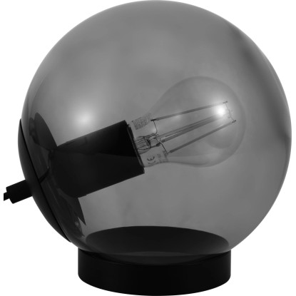 Az asztali lámpa szép látványosságot jelent, és kisebb asztalok vagy falmélyedések megvilágítására használható. Magassága 18,5 cm, átmérője Ø 18 cm. A lámpabúra füstüvegből, a talp matt fekete fémből készült. A lámpa egy kapcsolóval kezelhető. Az egyágú lámpa teljesítménye 40 W, és E27-es foglalatú izzókkal kompatibilis. A megfelelő LED-es izzó külön kapható.