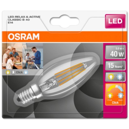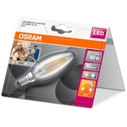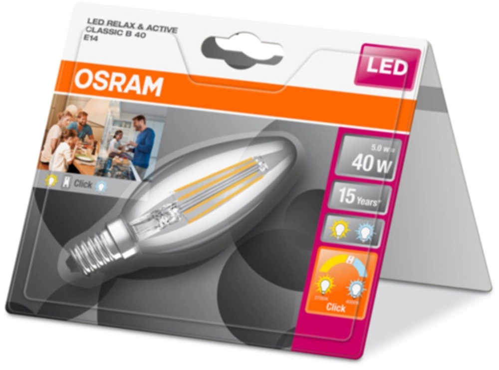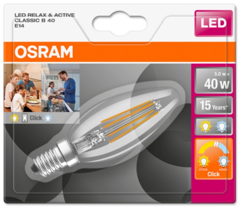 Az E14-es foglalatú, gyertya alakú Osram LED-izzó hosszú, 15 000 órás élettartammal rendelkezik.