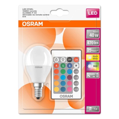 Osram Star+ LED kisgömb izzó E14 5 W RGBW távirányítóval